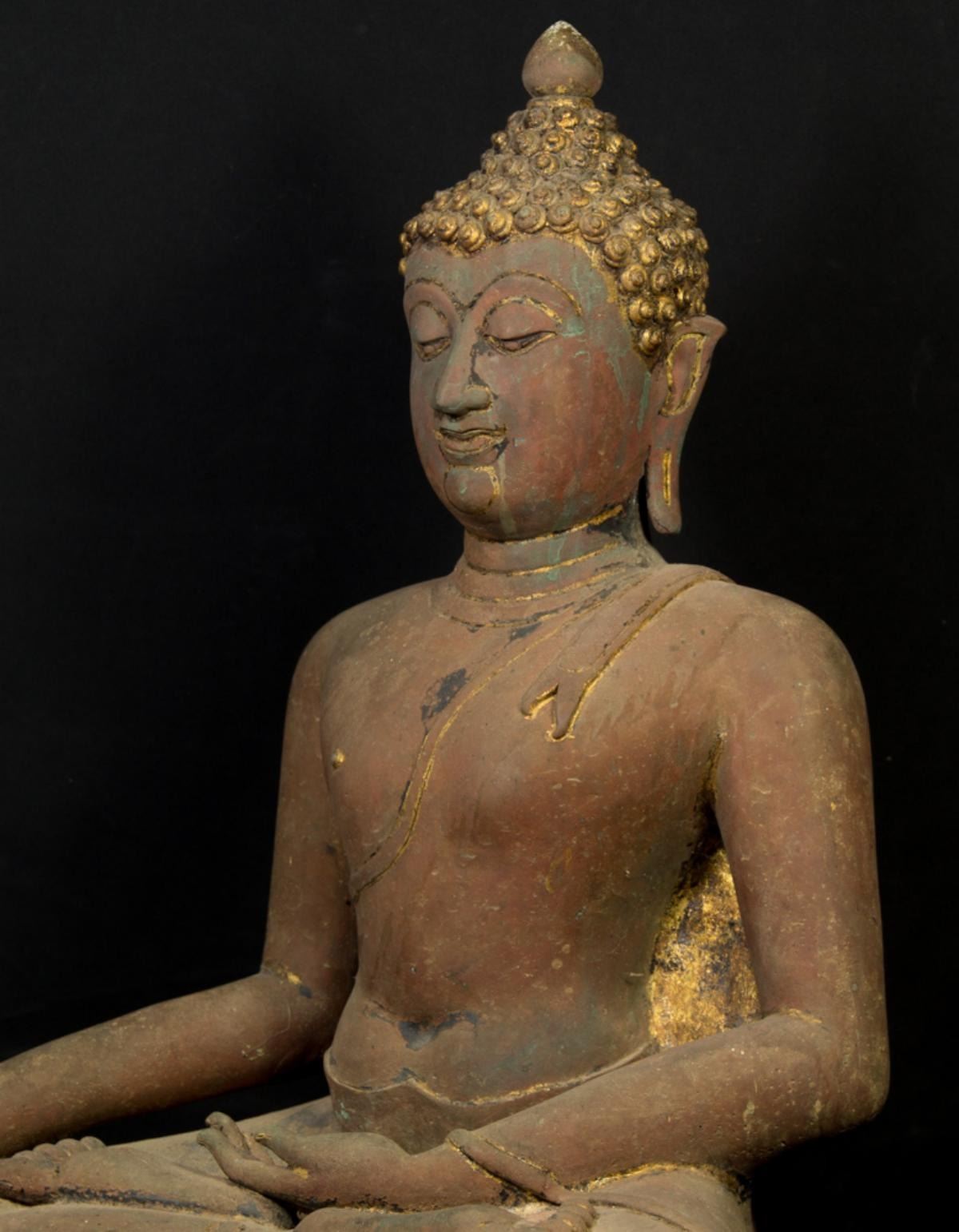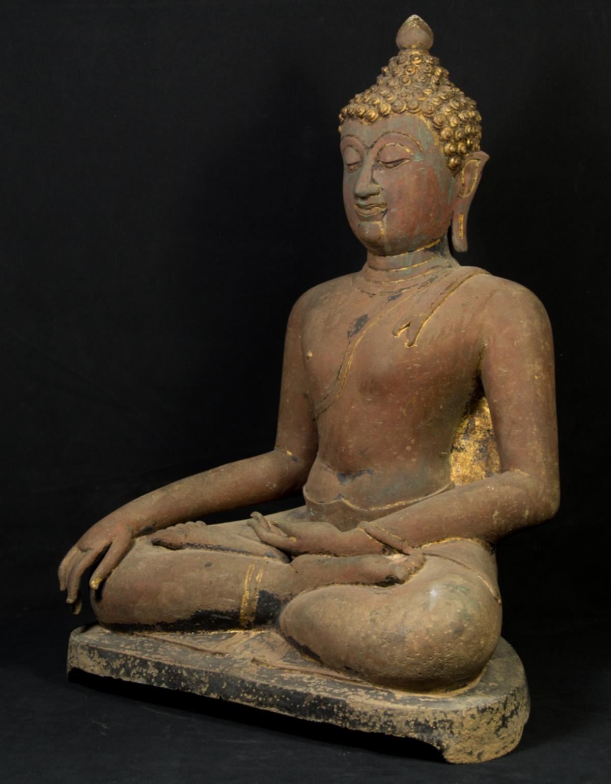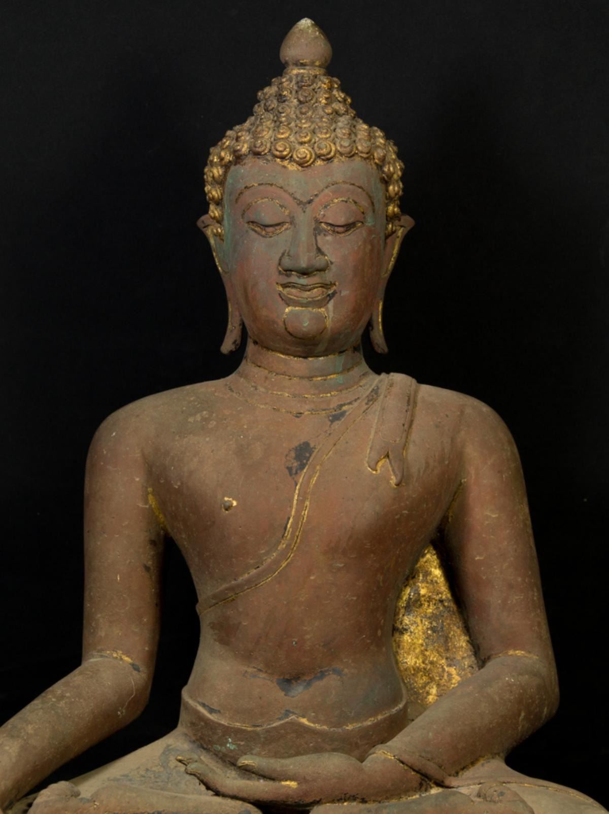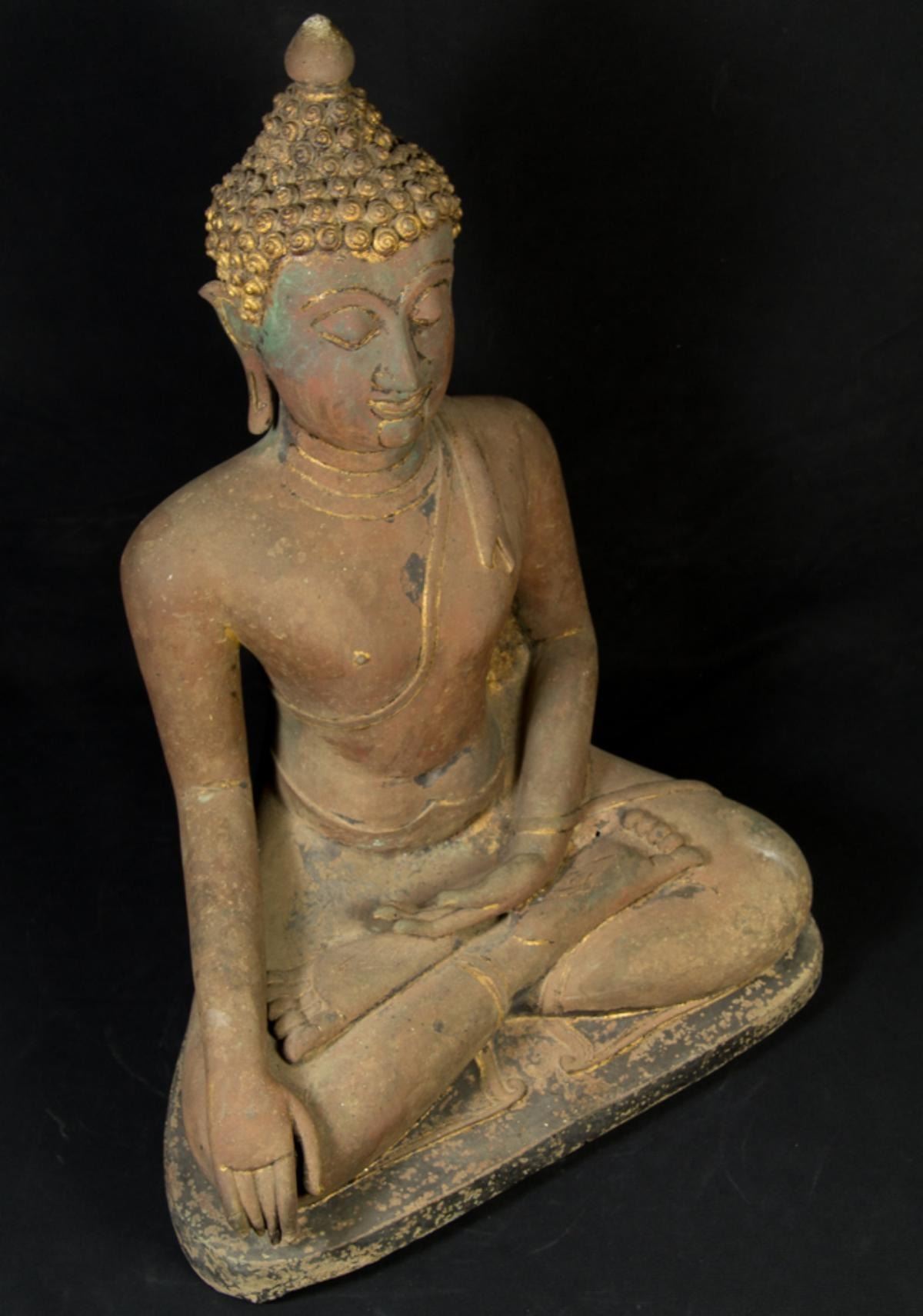 Antique Buddha Statue.....Material: Bronze61 cm high45 cm wide and 31 cm deepWith traces of the original 24 krt. gildingBhumisparsha Mudra;