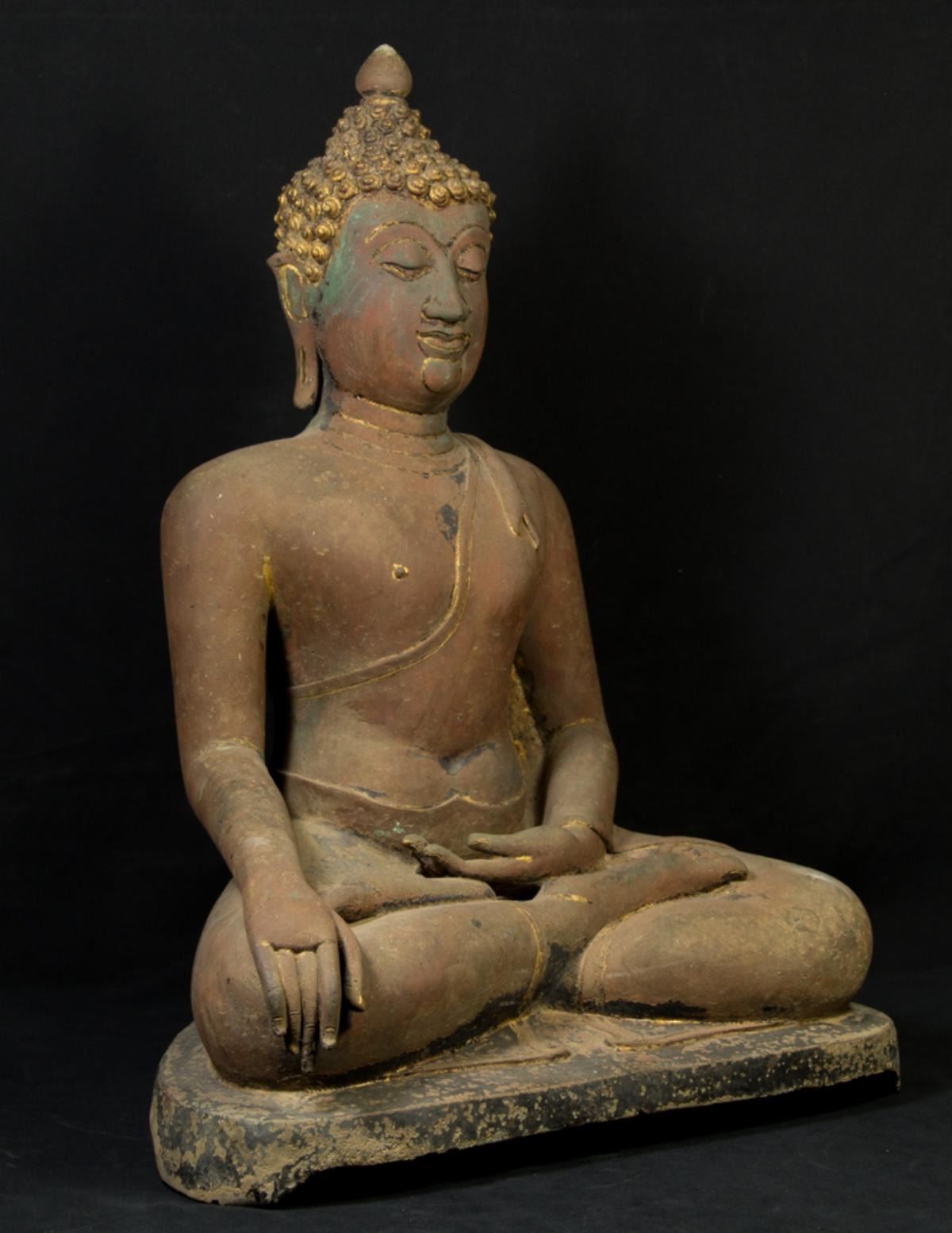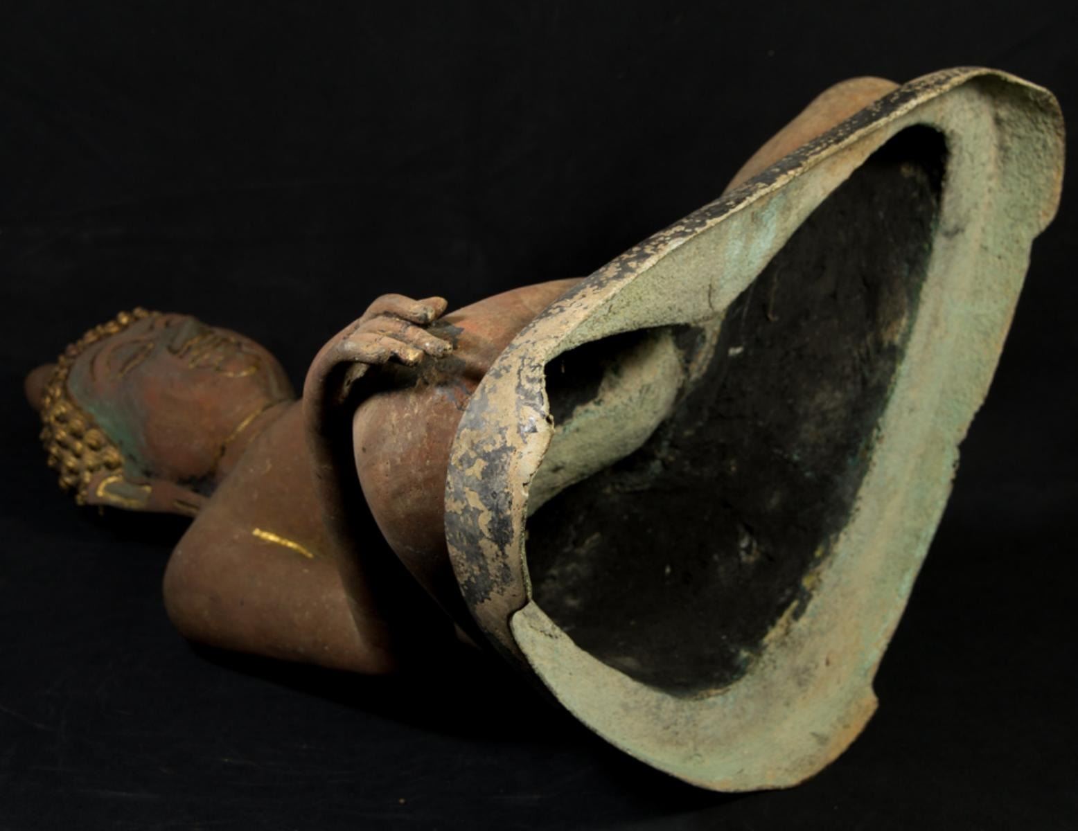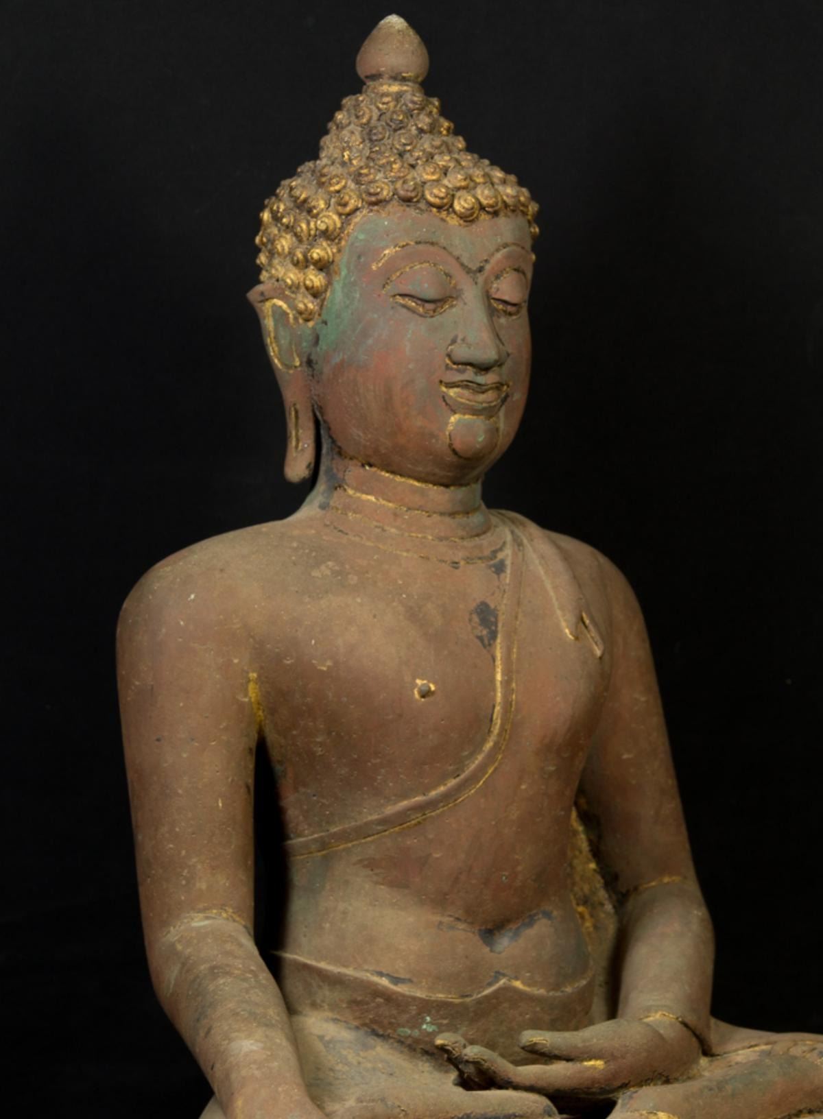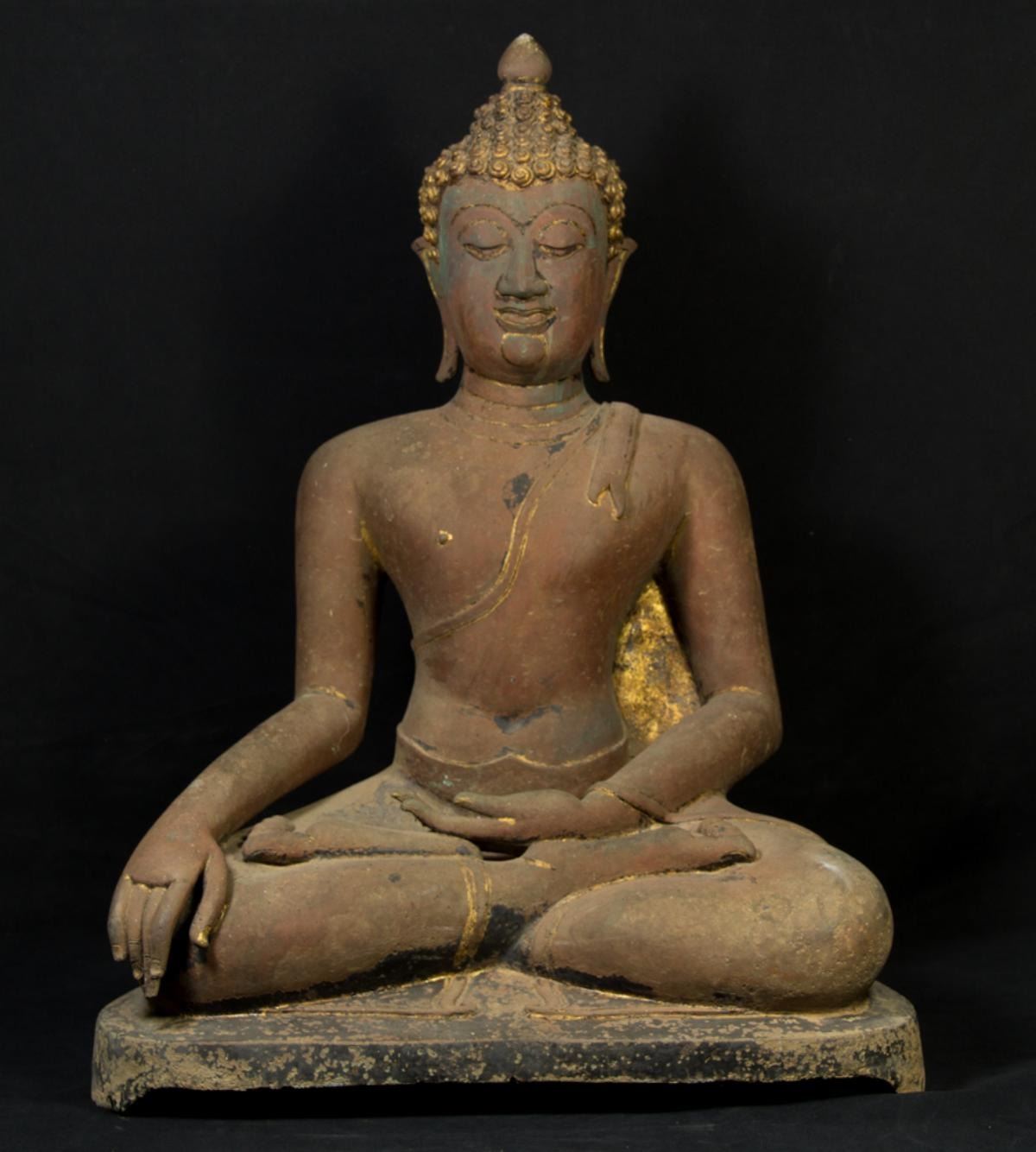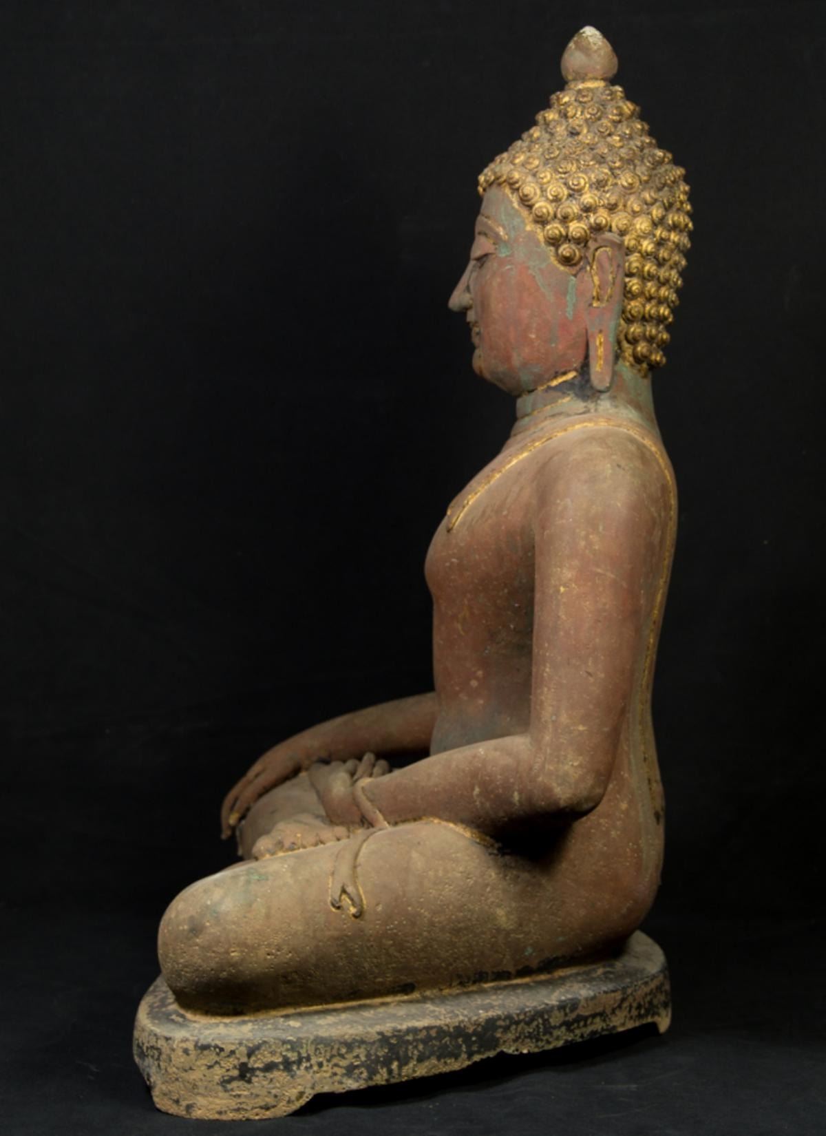 Antique Buddha Statue.....Material: Bronze61 cm high45 cm wide and 31 cm deepWith traces of the original 24 krt. gildingBhumisparsha Mudra;