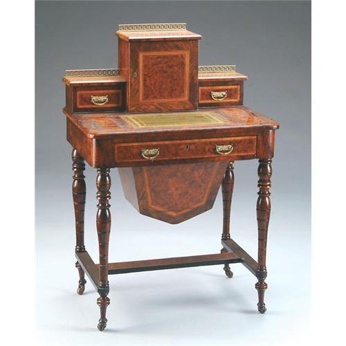<tr><td>Title: Antique Burl Walnut Ladies Work Table Desk</td></tr>