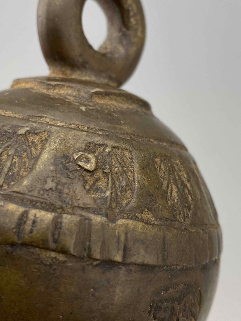 Antique Burmese Elephant Bell and Two Bronze Bells of Unknown Origin. Approximately 3.625L x 2.75W x 2.625D. Approximately 2.0L x 1.5W x 1.375D in.