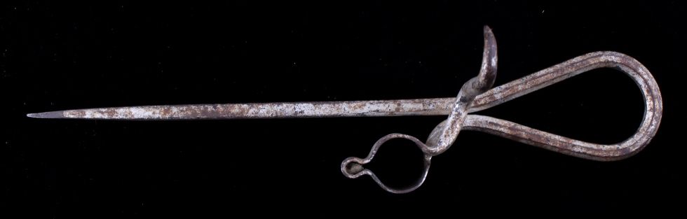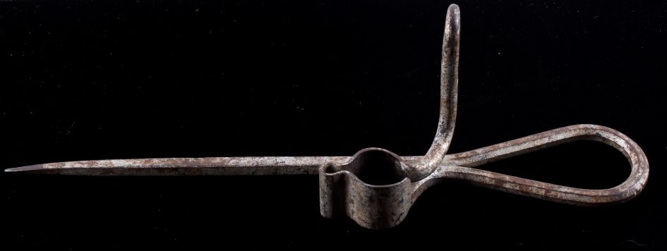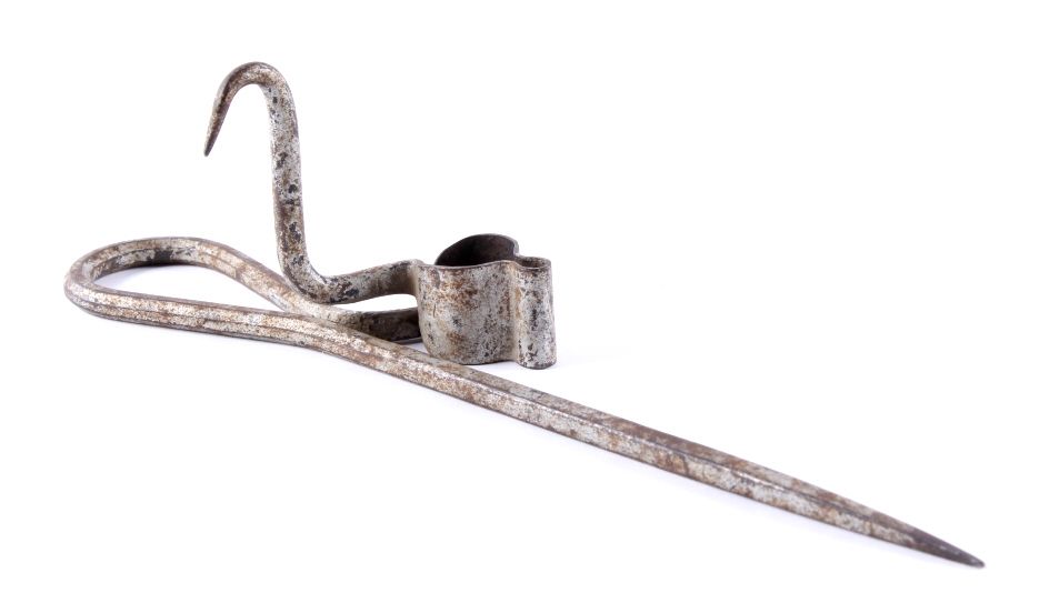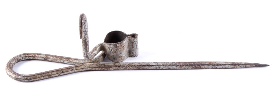 This is an original hand forged candlestick used by miners. The piece is believed to be from Butte, Montana in the 1800's. Measures 10"x2.5"x2.75"