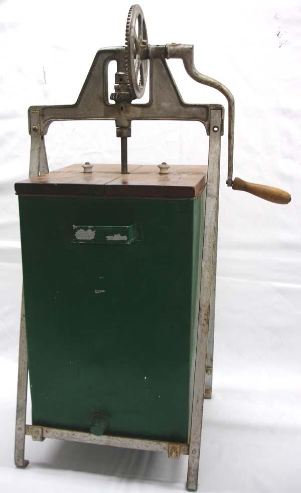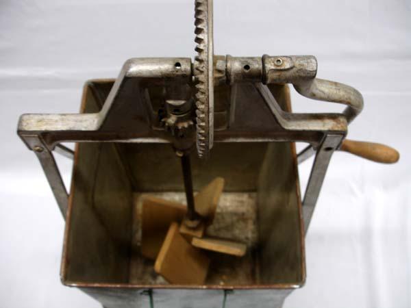 Antique Butter Churn. Cranks and is ready to go. The metal stand measures approximately 27''Hx12''W. Buyers Pay Actual Shipping and Handling Charges(see terms and conditions for more information).