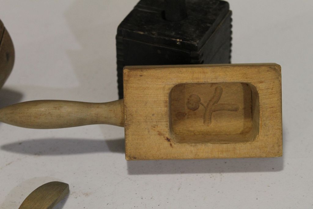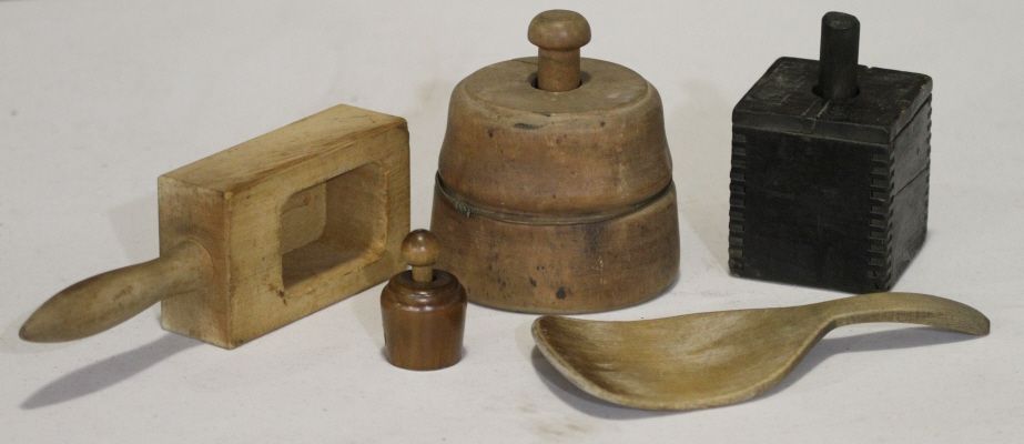Antique Buttermold Collection Great collection of different butter molds and paddle. One money.