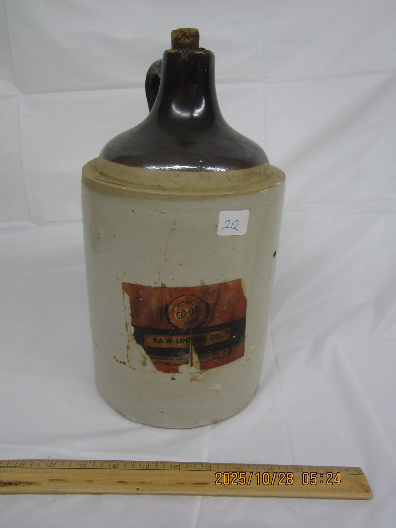 Antique CO-OP Paper Label Stoneware Jug