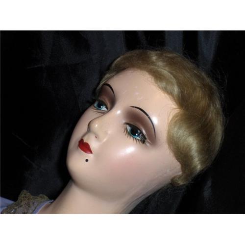 <p>This Lady is an Authentic Boudoir Doll. She has a Soft Honey Colored Wig in a Chic Flapper Style. Her Exquisite Composition Face is Hand-Painted, with Cobalt Colored Eyes that Dazzle with Long Eyelashes. Composition Hands and Cloth Body. Lavender Satin Gown Trimmed Gold Metallic Lace with Gold Metallic Coutures Trim at the Waist. Black Leather Shoes with Wooden Heels.