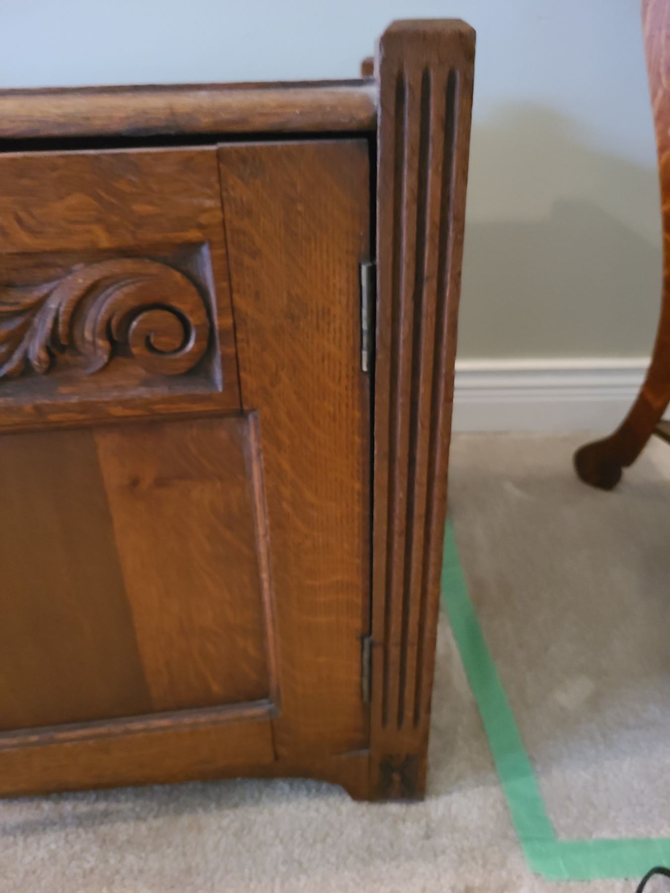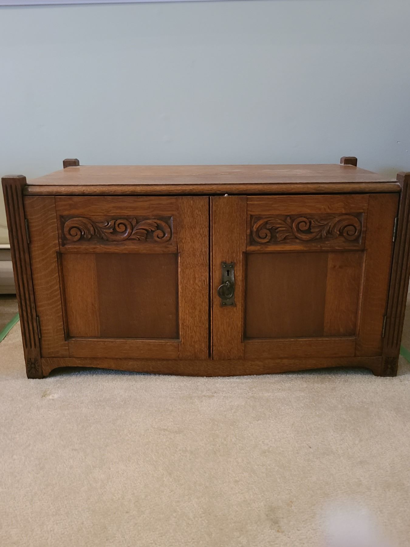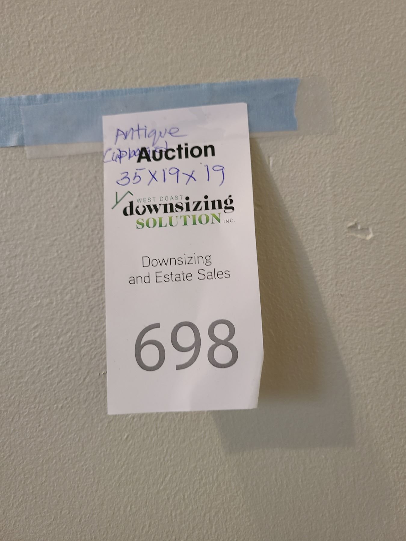 Antique cabinet 35x19x19. Very heavy, bring help to move downstairs. Pickup at 11 am.