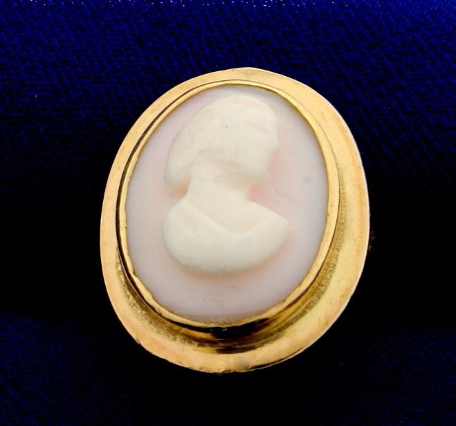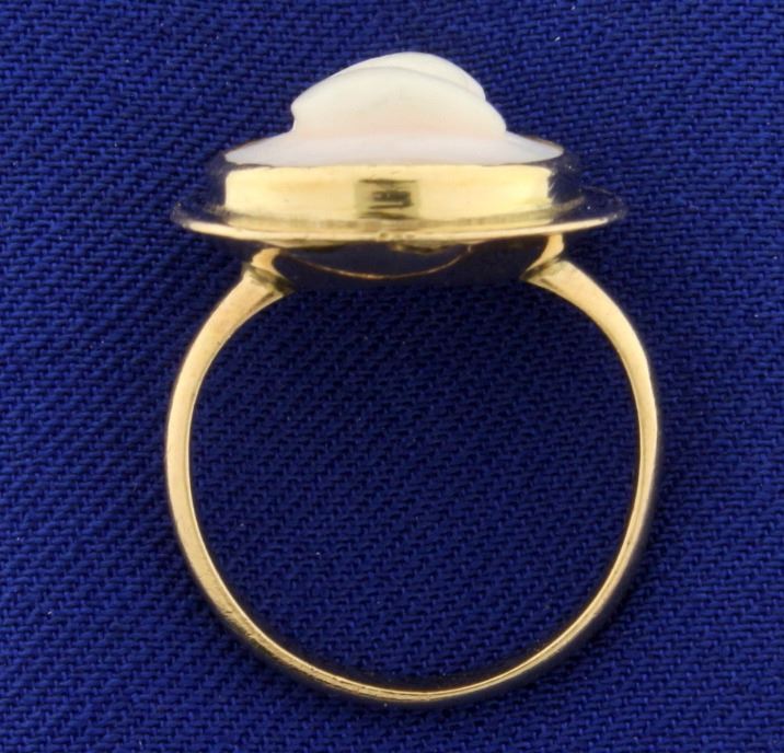 In 14K Yellow Gold. Contains a 16x12mm light pink Cameo. Size 4 1/2. 4.2g