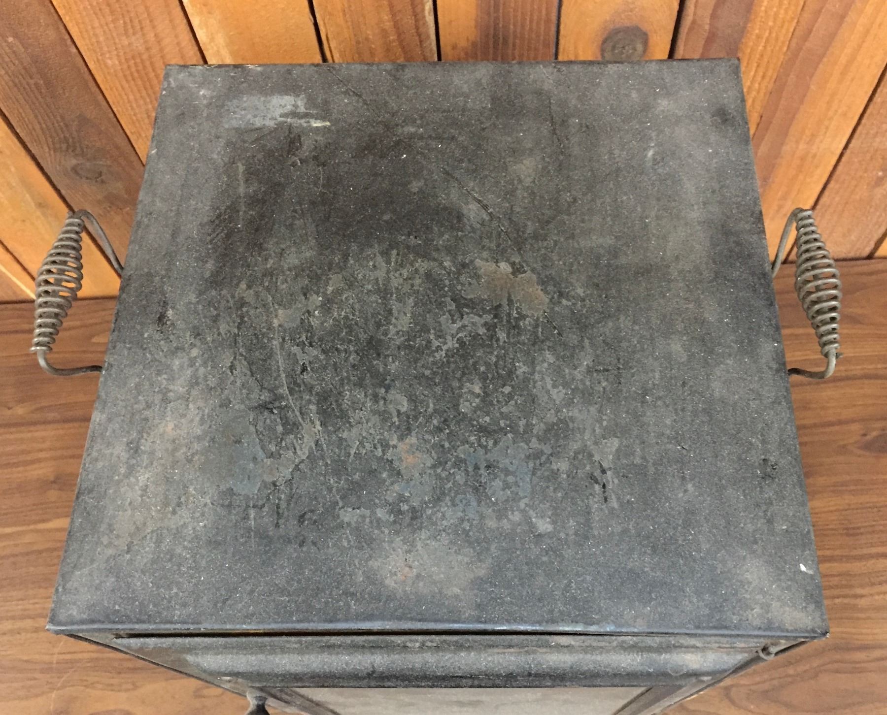 Size: 13"w x 17"h x 12" long. Condition: Fair for its age, normal wear expected. Intact metal with a few minor dings, surface rust. Please look closely at the pictures - they are an important part of our description.
