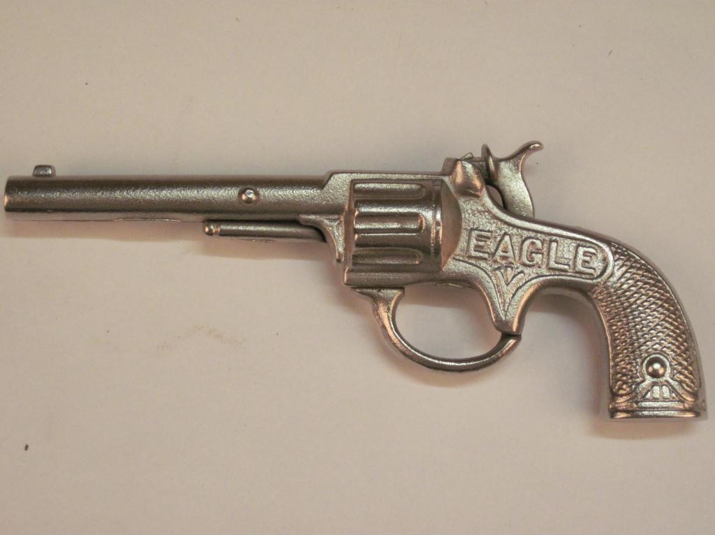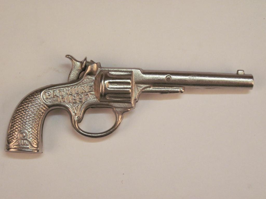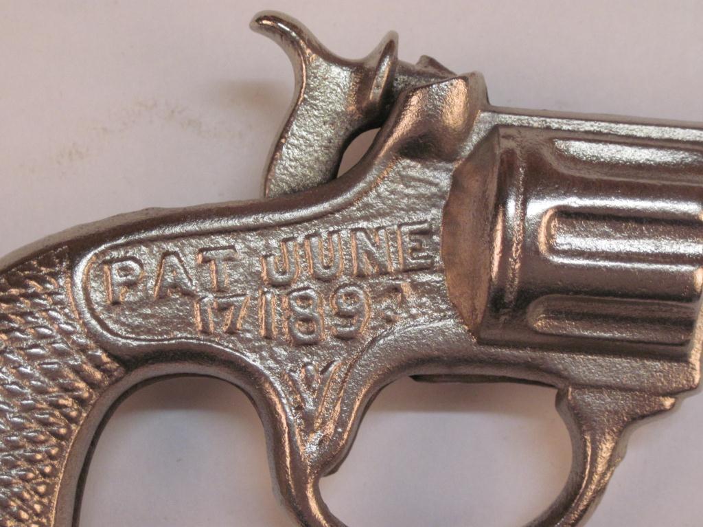 Antique Cap Gun, "Eagle" emblem on one side and Patent June 17, 1892 on the other. It is in excellent condition as refinished."Eagle" emblem on one side and Patent June 17, 1892 on the other. It is in excellent condition as refinished.