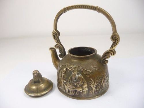 Description: Antique Carved Copper Teapot;Material: Copper bronze;(L x W x H)Size: (10.8 X 8.2 X 11)CM