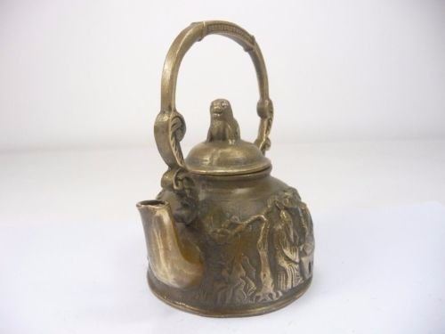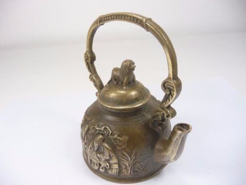 Description: Antique Carved Copper Teapot;Material: Copper bronze;(L x W x H)Size: (10.8 X 8.2 X 11)CM