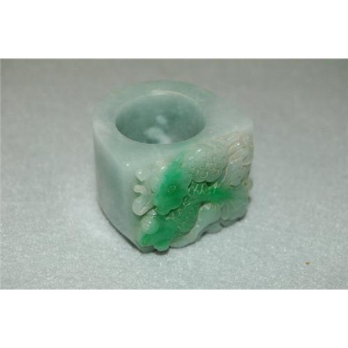 Antique Carved Green Jade Ring.19th Century. good condition.