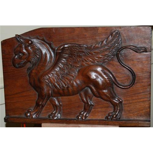 Antique Carved Griffin, c. 1884. Signed on back with reg. mark.