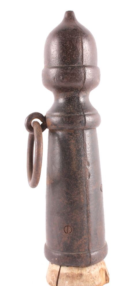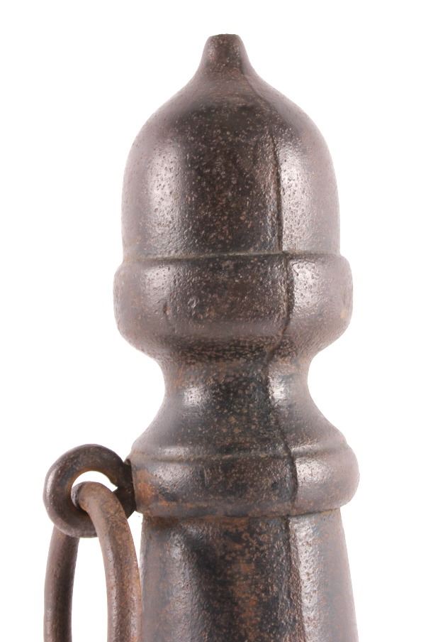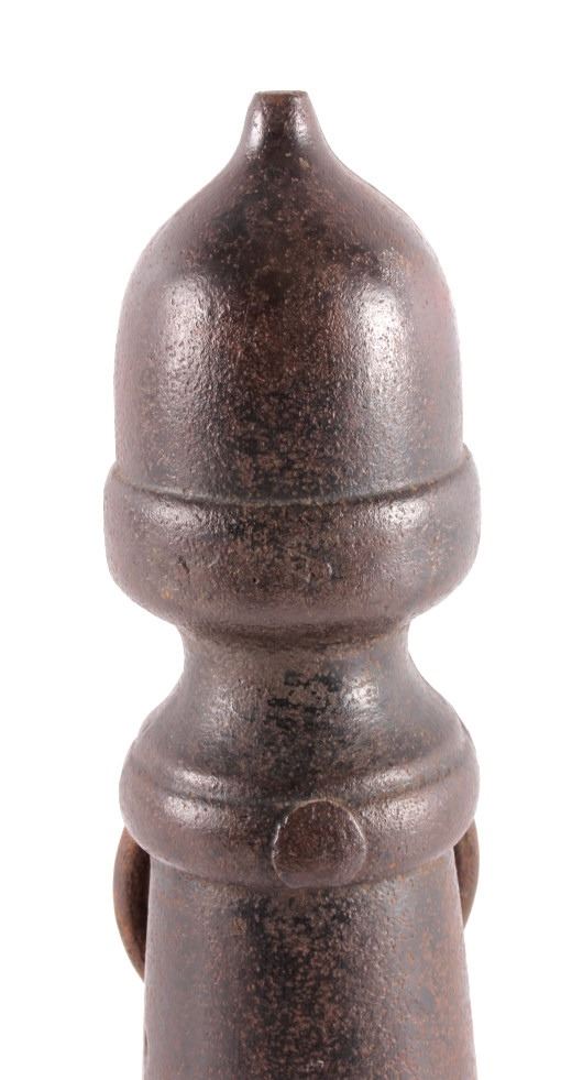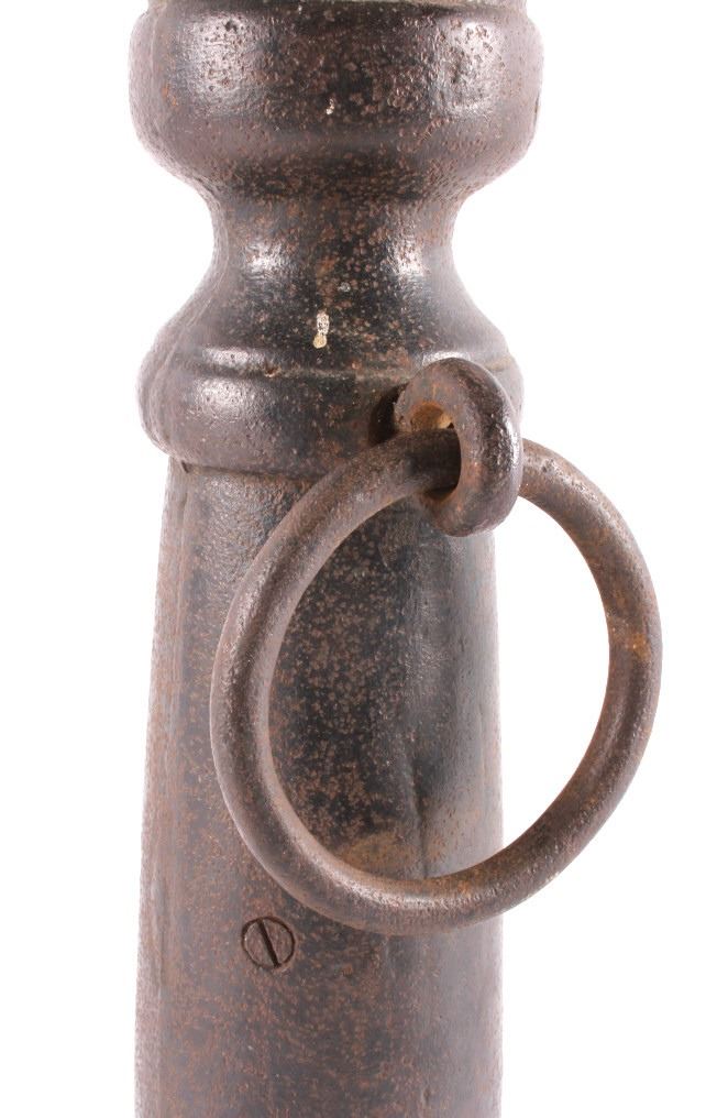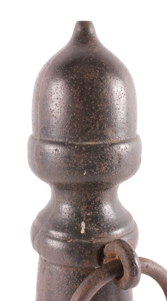 This is an antique cast iron acorn horse hitching post. The piece is in original condition with fantastic patina. The hitching post is in good condition. It measures 4" in diameter and is 16" tall.