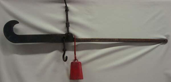 1900's Iron Balance Scale with Weight. Red weight is 2.75'' diameter x 9'' length with hook. Patent stamped Jan. 11, 1918. Balance is 35.5'' L. Buyers Pay Actual Shipping and Handling Charges(see terms and conditions for more information)