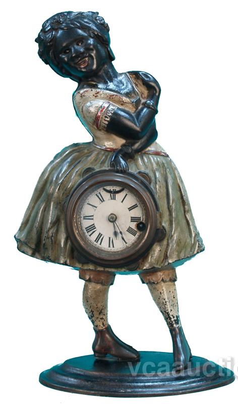 Antique Cast-Iron Mantle "Topsy" Figure Clock by Bradley & Hubbard c1860 (eyes move) all original