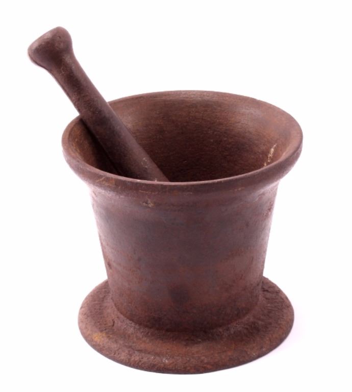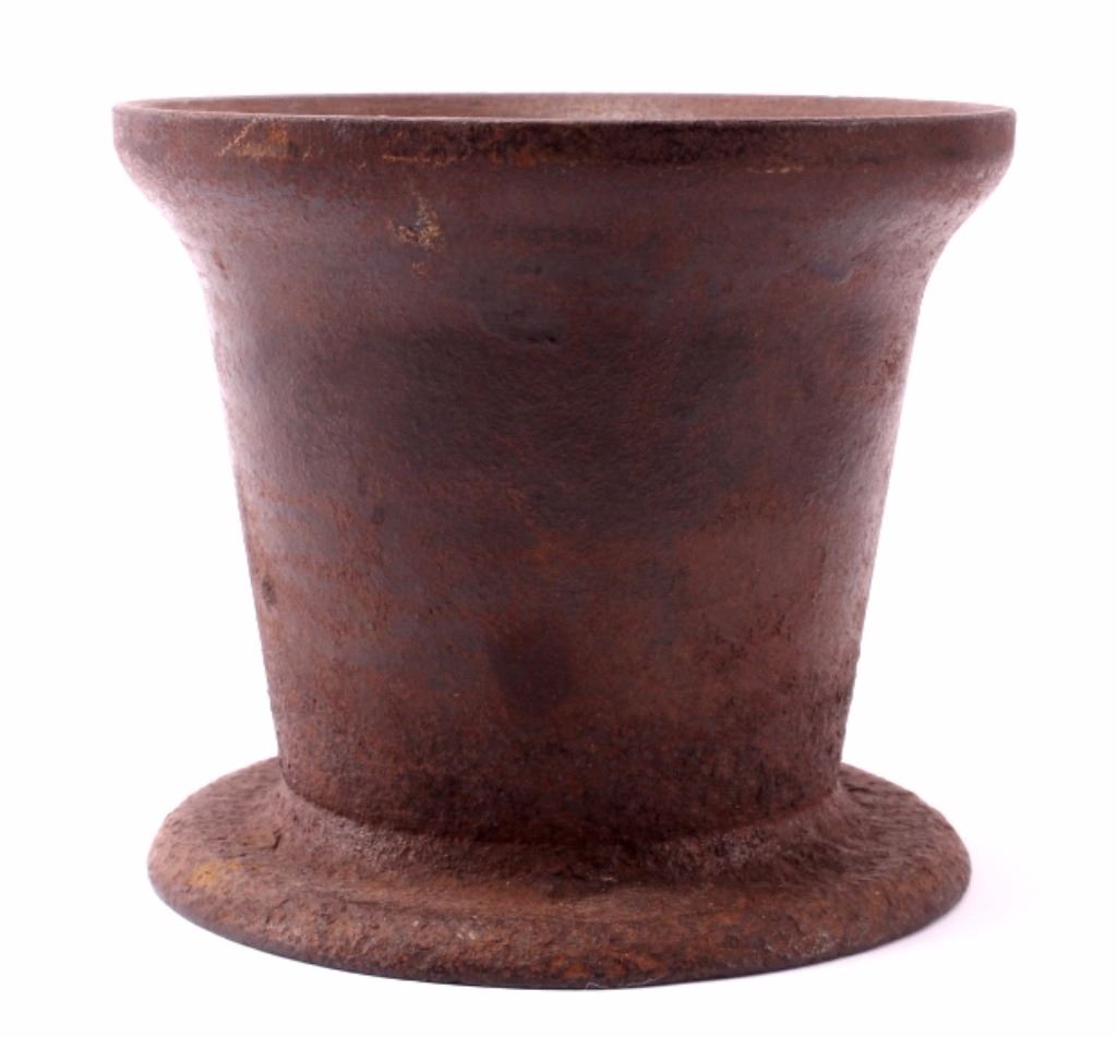 This is an antique cast iron mortar and pestle. This is a great piece from the late 1800's to early 1900's. The mortar and pestle is in good condition. The mortar measures 4.5" in diameter and is 4.25" tall. The pestle measures 6.5" long.