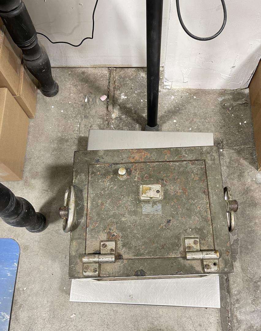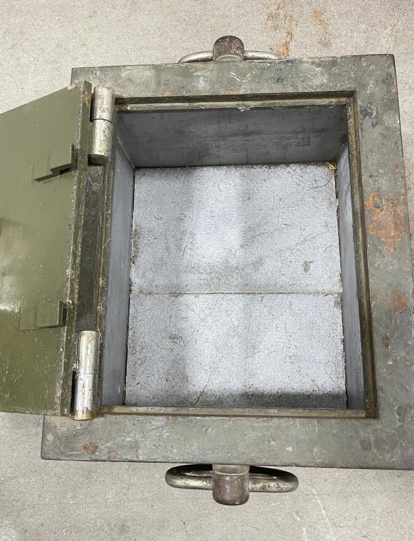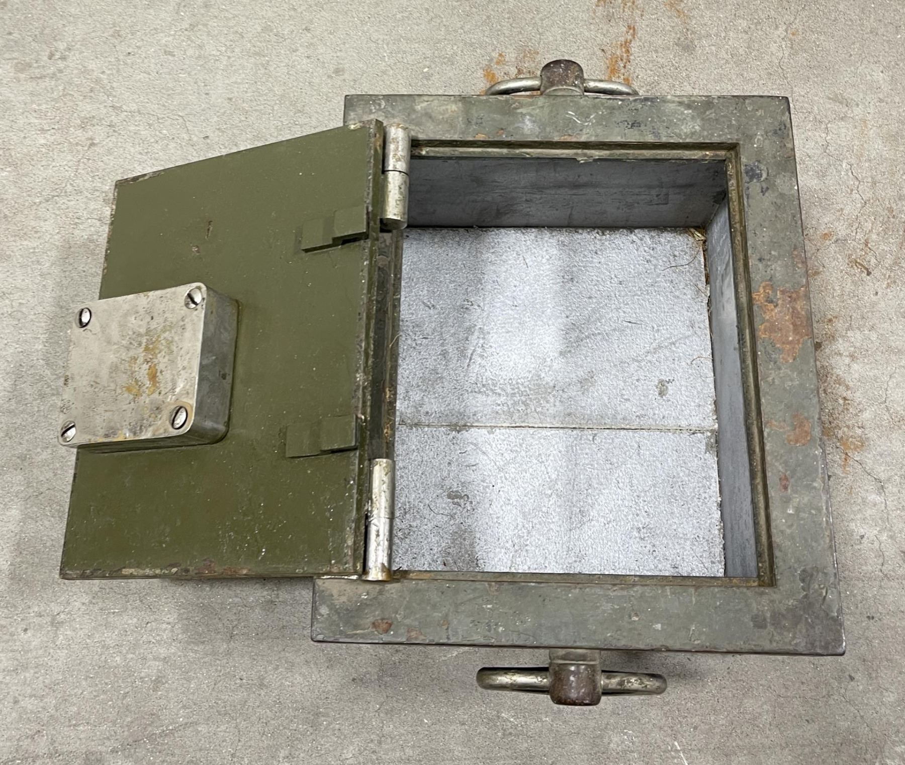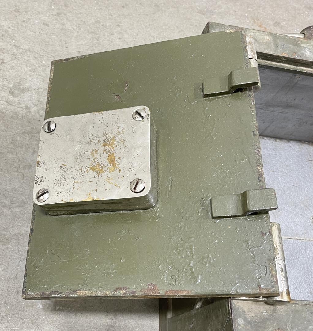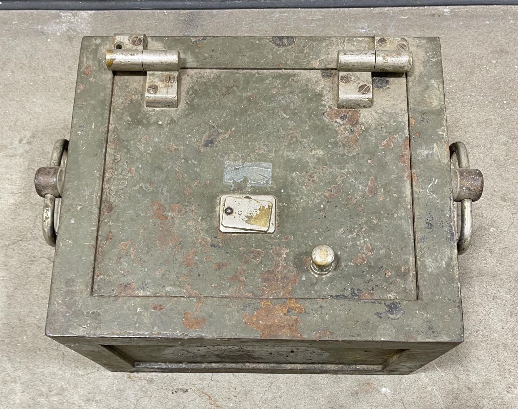 Very nice old strong box. Weighs almost 78 pounds. Military or possibly Railroad.