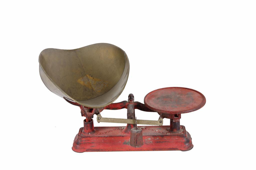 Antique Cast Iron Scale by Fairbanks Standard Includes brass scoop and most of the original red polychrome finish remaining.Includes brass scoop and most of the original red polychrome finish remaining.