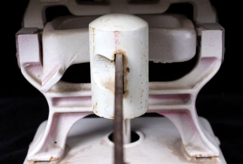 Included in this lot we have a vintage cast iron sliding scale. The piece shows a cast iron base with a stainless steel bowl. The scale limb along with the counter weights are made of cast iron. The scale appears similar to a scale doctors would use to weigh babies. The counter weight as well as the knob are marked "10lbs". The piece appears to have been originally pink and has since been painted white. The scale is in good overall condition. It does show wear consistent with age. The base measures 18" X 7". The bowl measures 19" X 11 3/4". The height is 8 1/2".