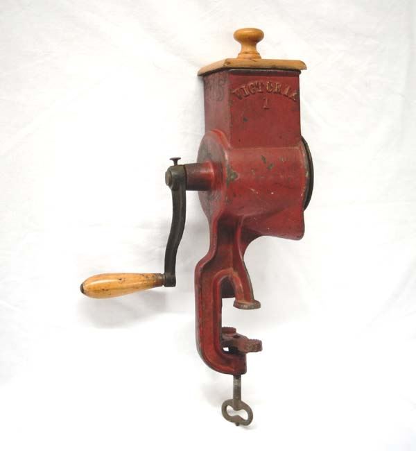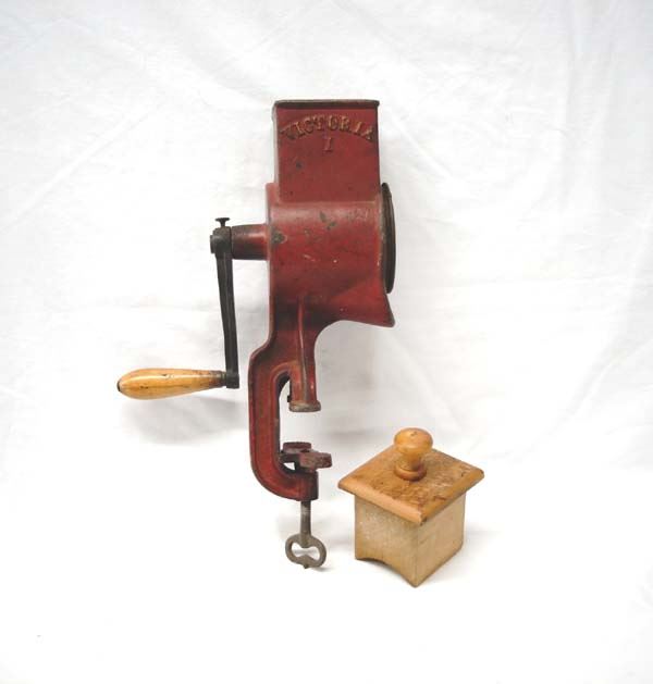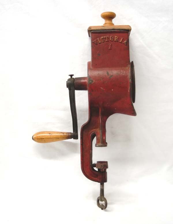 Antique Cast Iron Victoria Grain Mill Grinder, original paint, marked Victoria I, measures 17''L x 10'' x 4''