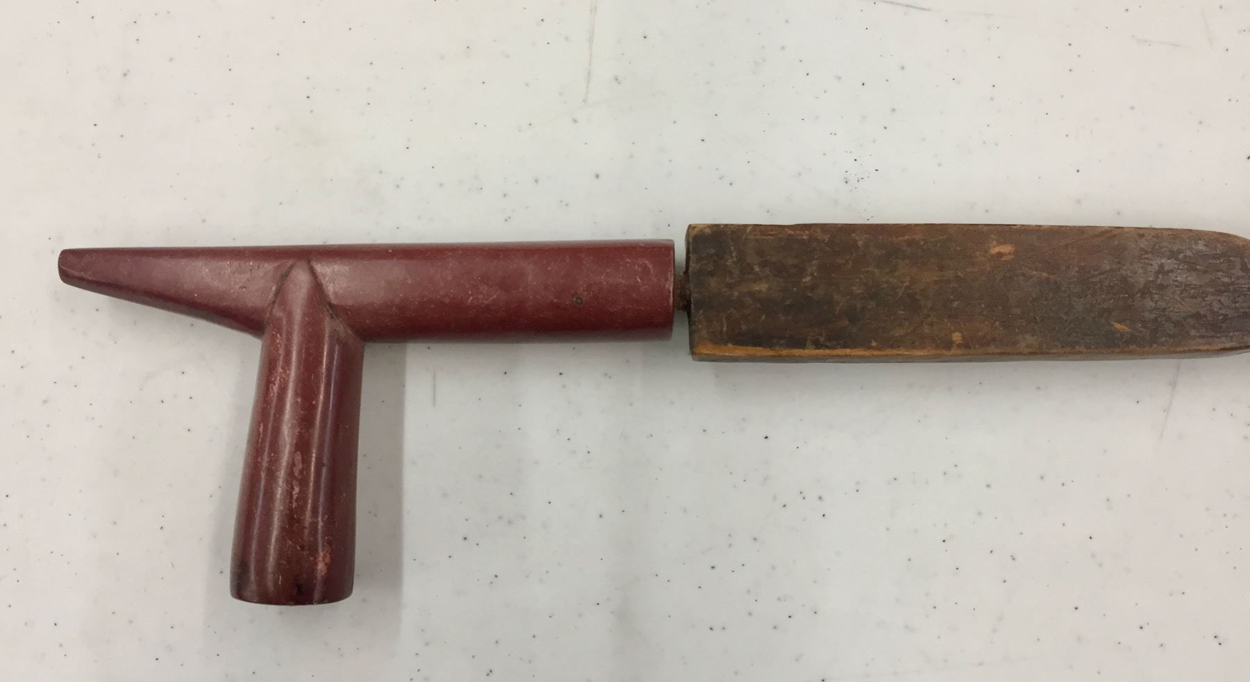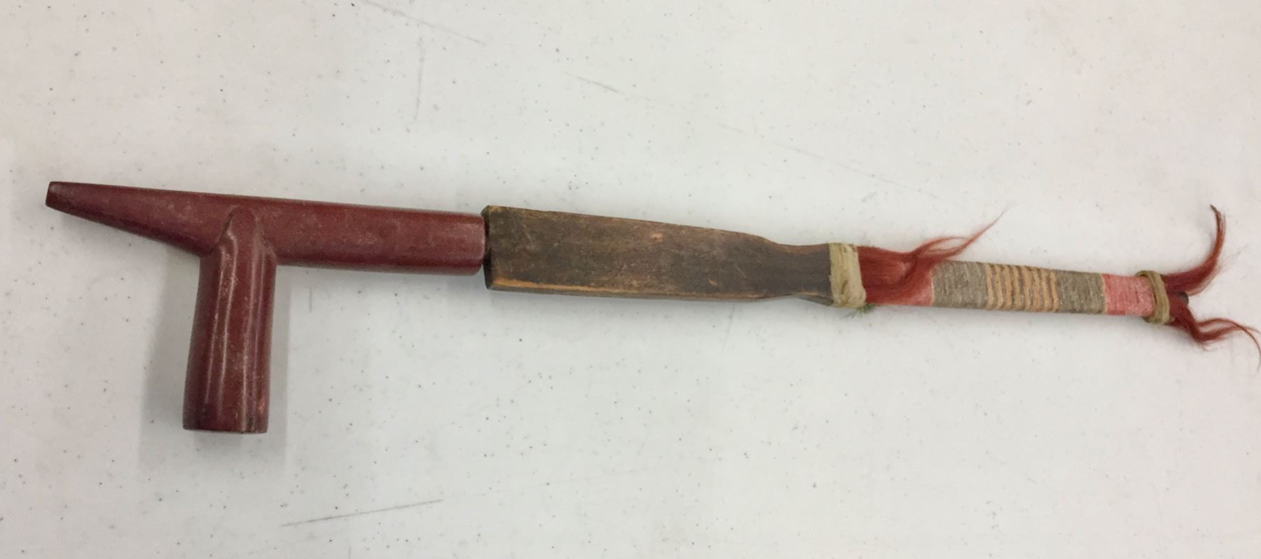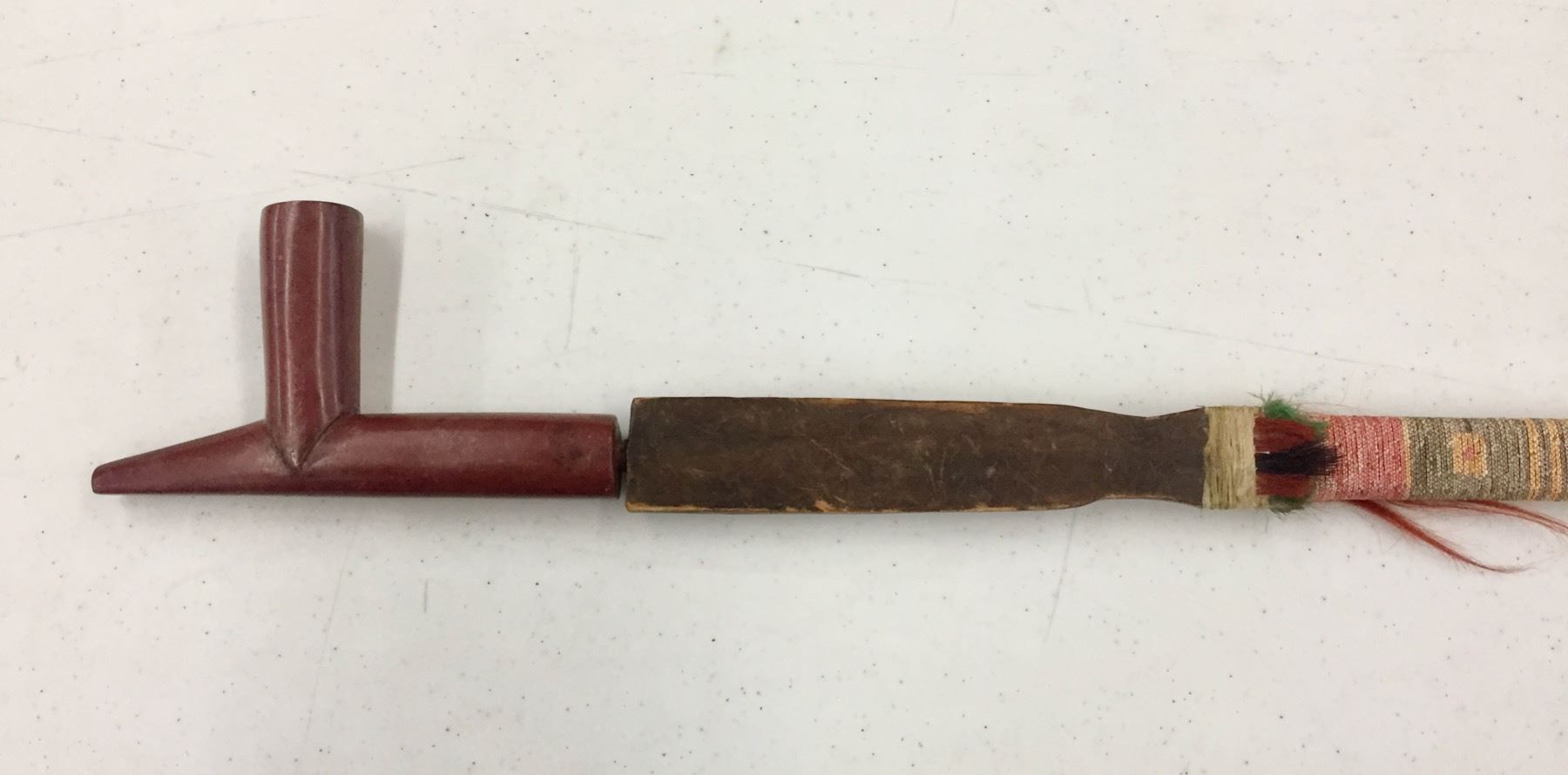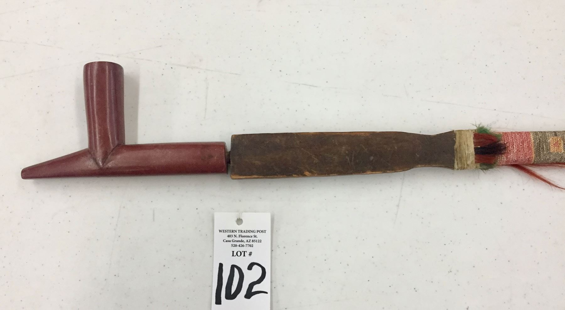 Description: Presented for sale in this lot is an old Catlinite Pipe with a hand crafted, decorative stem. This would make a great addition to your collection and is a conversation piece when displayed. Maker: Unknown. Approx. Age: Late 19th or early 20th century. Size: 4”w x 26-1/2” long. Condition: Good for its age, normal wear expected. Please look closely at the pictures - they are an important part of our description. Shipping: There will be a $5 handling / packaging fee for shipping this lot. The actual cost of postage will be added on top of that.