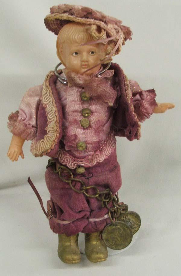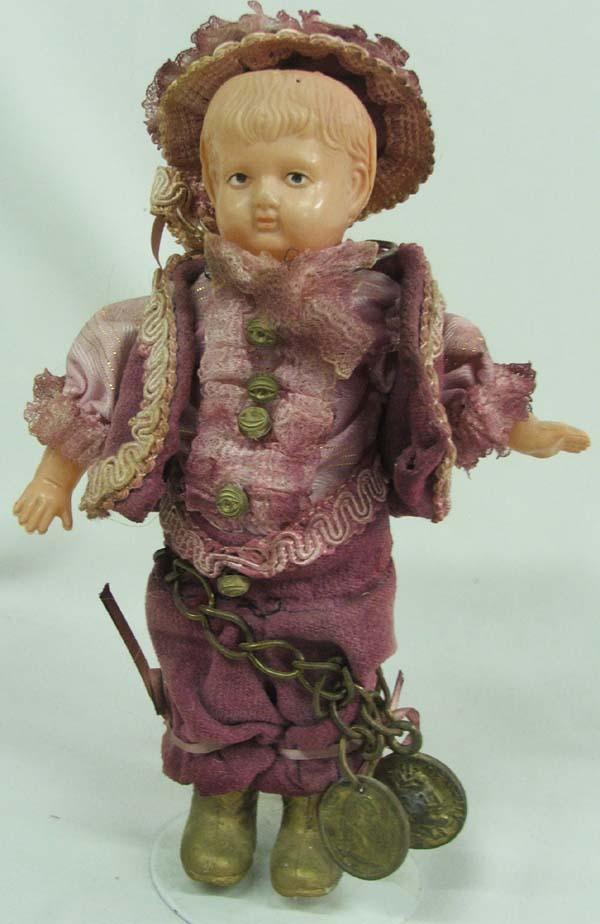 Antique Celluloid Doll. Measures approx. 8 1/3'' tall, head has a hole. Buyers Pay Actual Shipping and Handling Charges(see terms and conditions for more information).