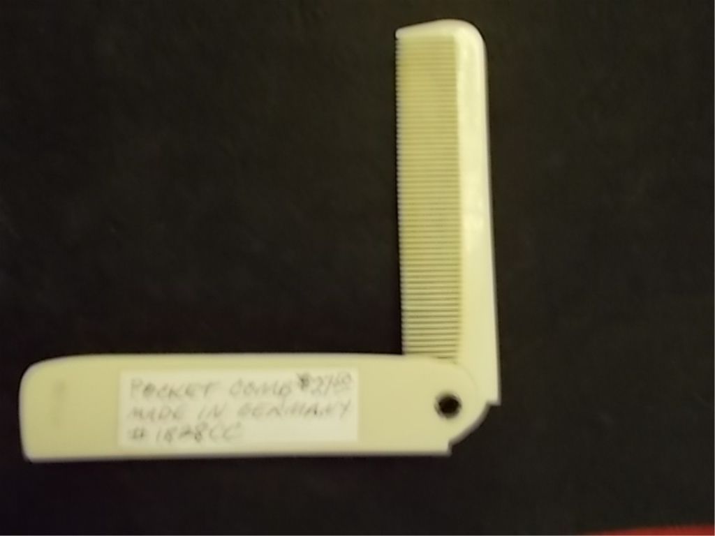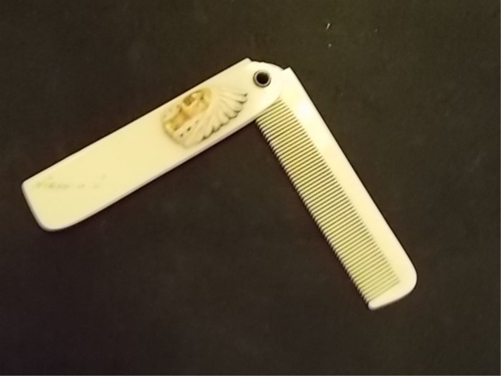 18ct - Antique Celluloid Pocket Comb with Detailed Indian Chief Head. This 3 ½” (closed) pocket comb (6 ¾” open) is probably a souvenir of Niagara Falls and is in used condition.
