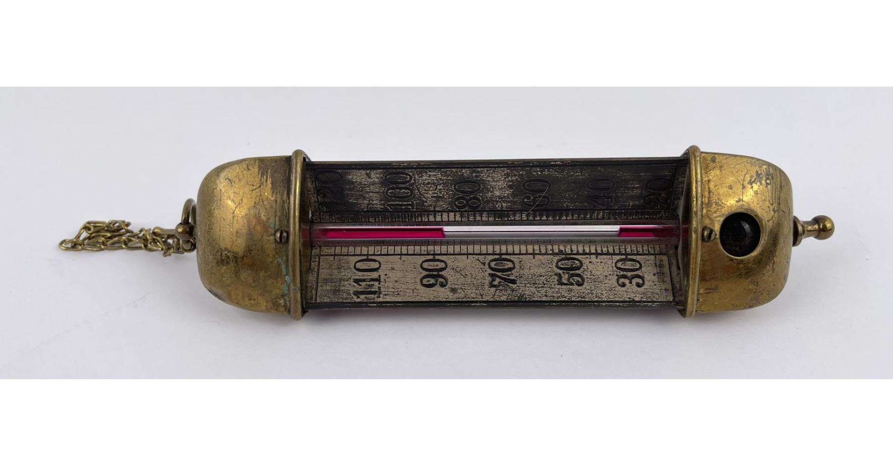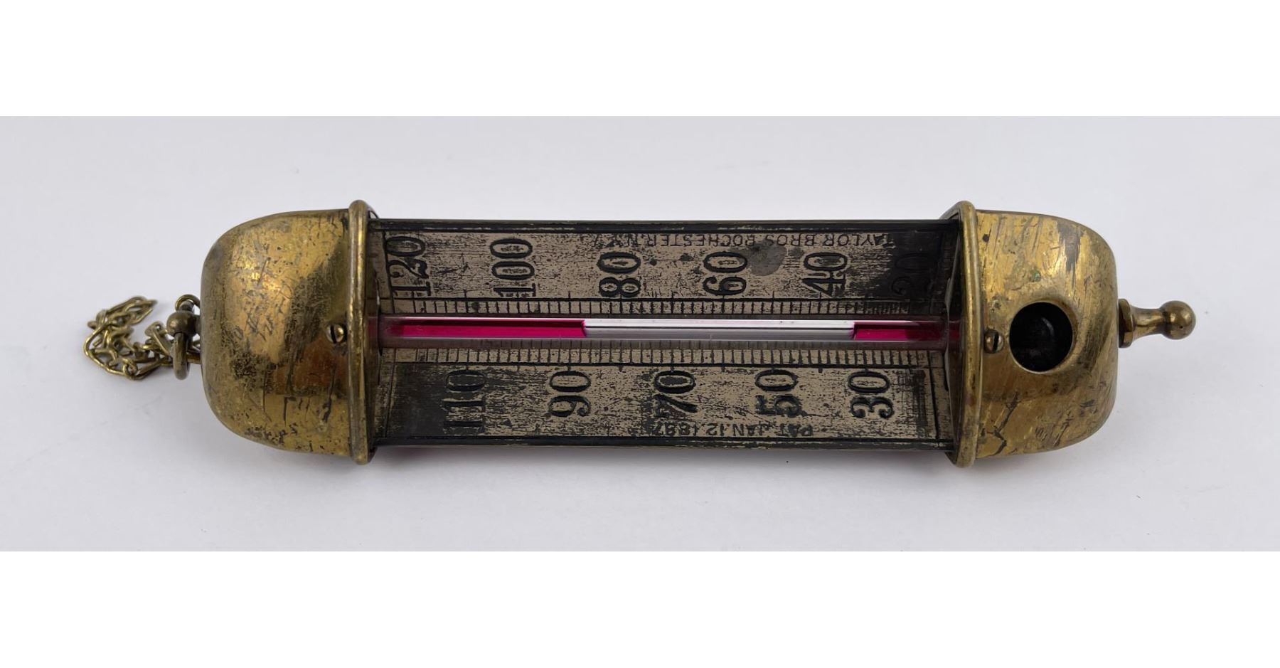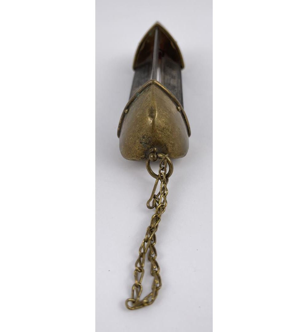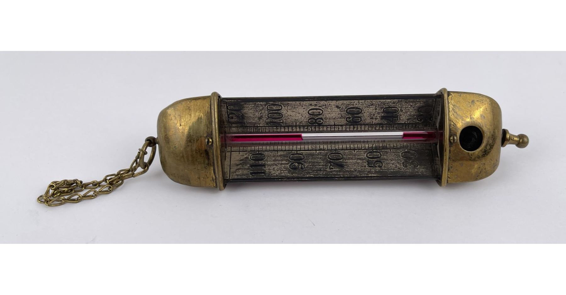Unusual antique thermometer. Designed to snap on to your chandelier and be suspended by a chain so you could view it at any angle.