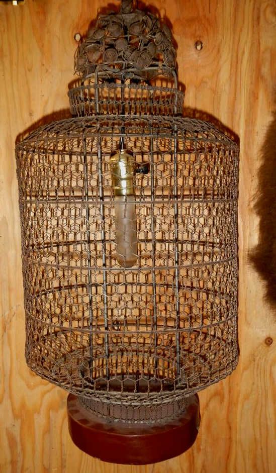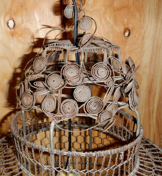Antique Chandelier made from Bird Cage - This is all wired and has the attached chain. Measures 26" by 13"
