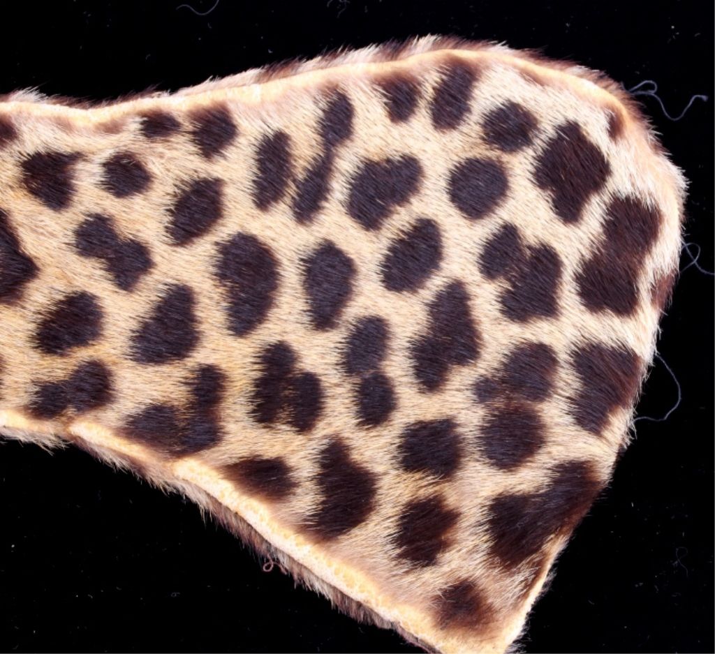 The piece is an early antique color showing genuine Cheetah fur with an early clothe back. The piece shows overall great condition and is a desirable fur. The color measures 16.75" long by 5"