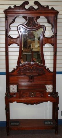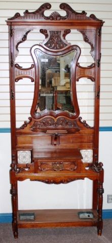 Antique furniture: Impressive High Back Walnut Victorian Bed (Best one we’ve ever seen)with Matching Half Commode-Gorgeous 1890s Cherry Wood Dining Room Set with Large Mirrored China ...