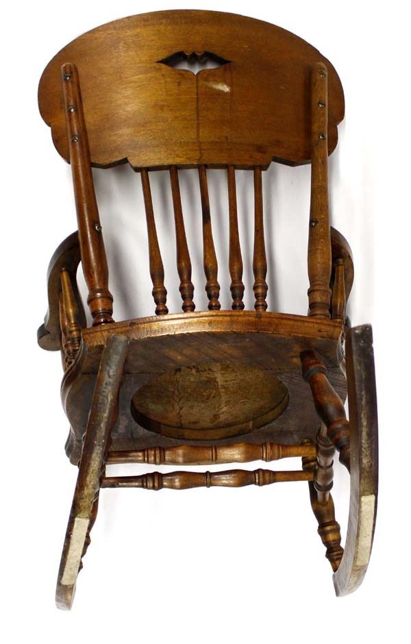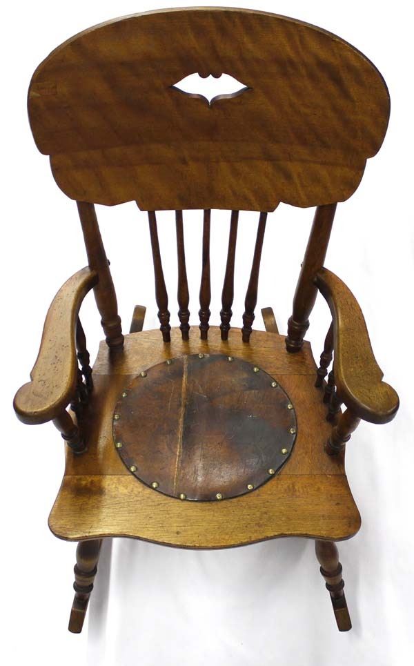 Antique Child's Wood Rocking Chair, measures 29'' x 22'' x 18'', circular leather seat, beautiful piece, appears to be made of walnut wood