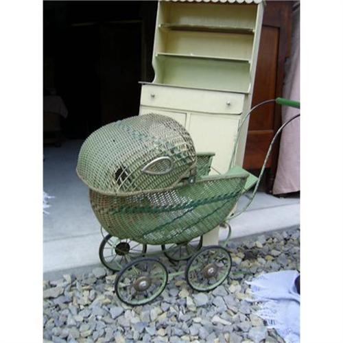 <tr><td>Title:Antique Childs Doll Buggy Pram Wicker Grn.</td></tr>