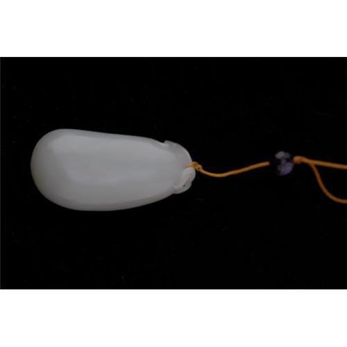 An antique Chinese carved celadon jade toggle model of a tiny lizard on top of a squash, the color is remarkably pure. Circa 18-19th centuries. L: 2 1/4".