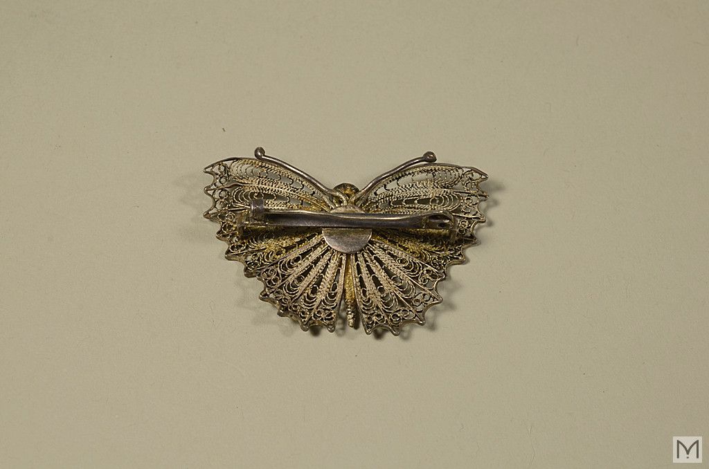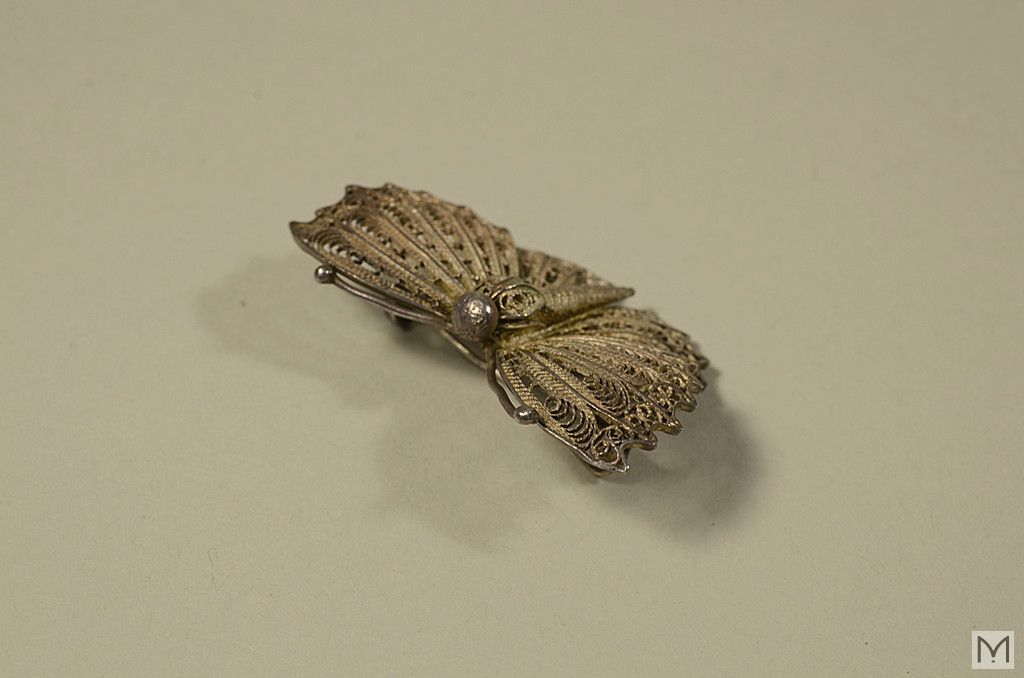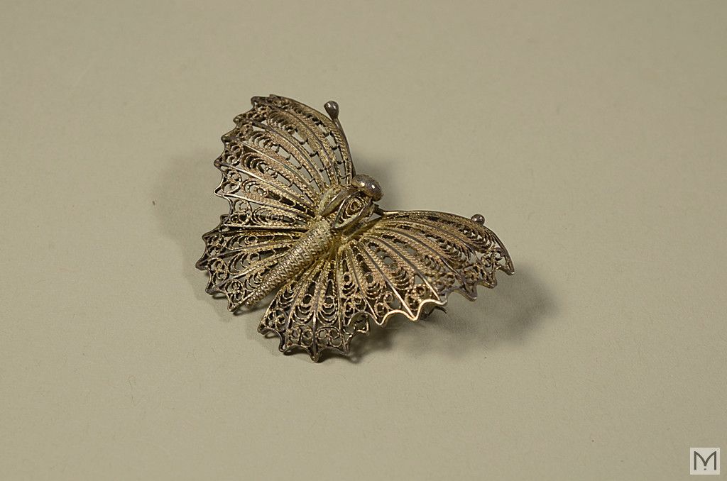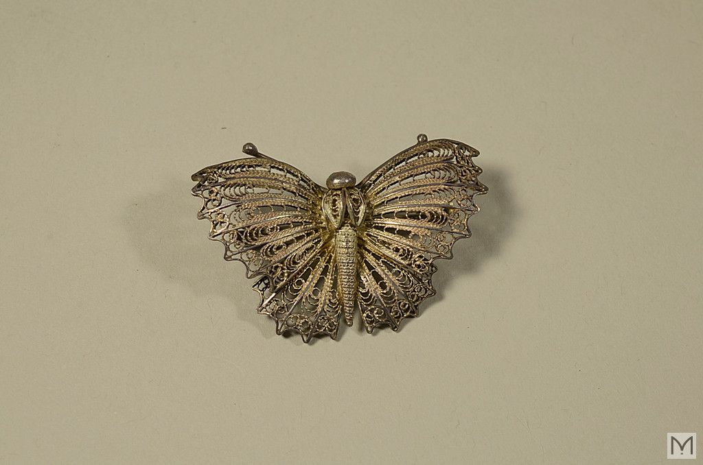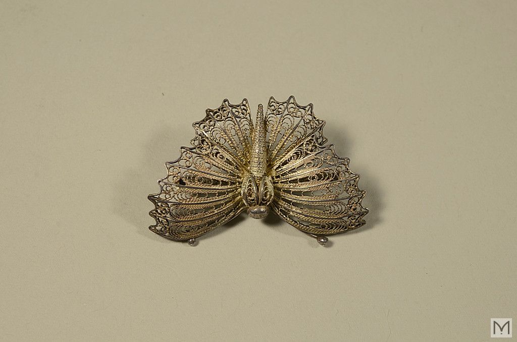 Antique Chinese Filigree Butterfly Brooch, Traces of Gilding Remain