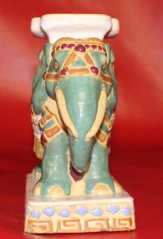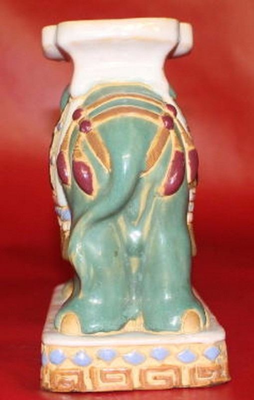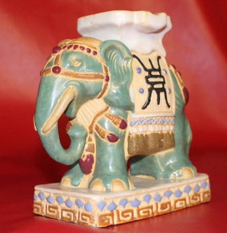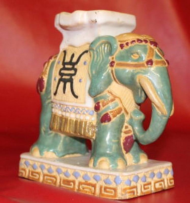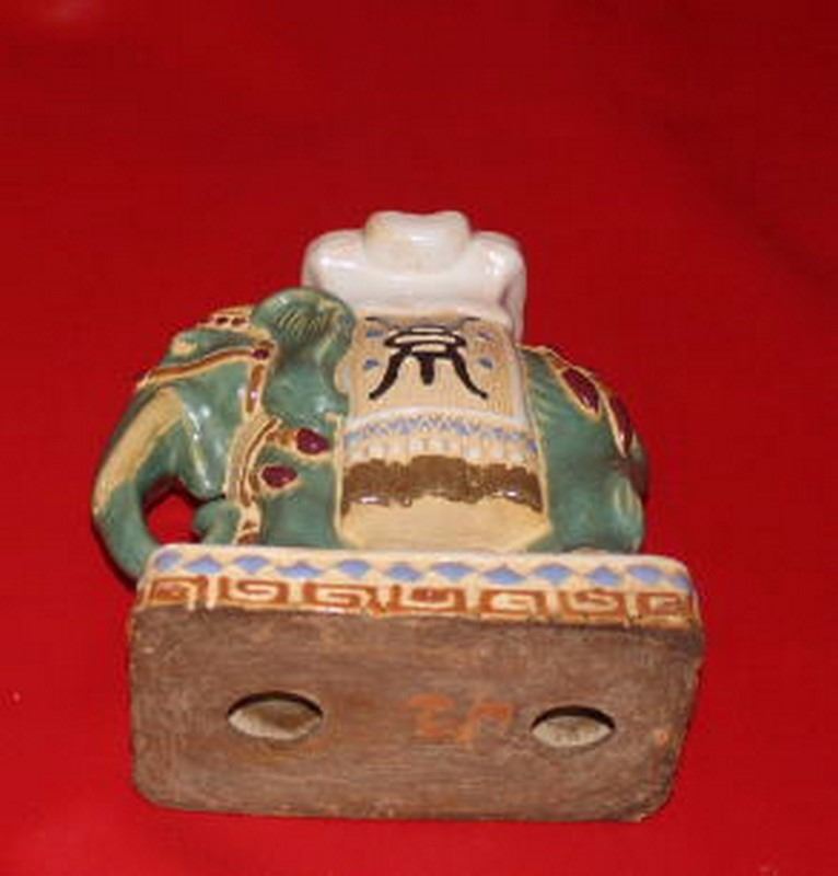 Antique Chinese Glazed Ceramic Elephant Hand Painted Sculpture 7x7", 3-lbs