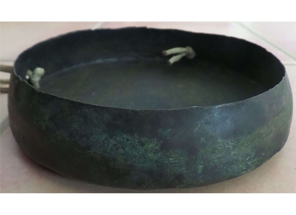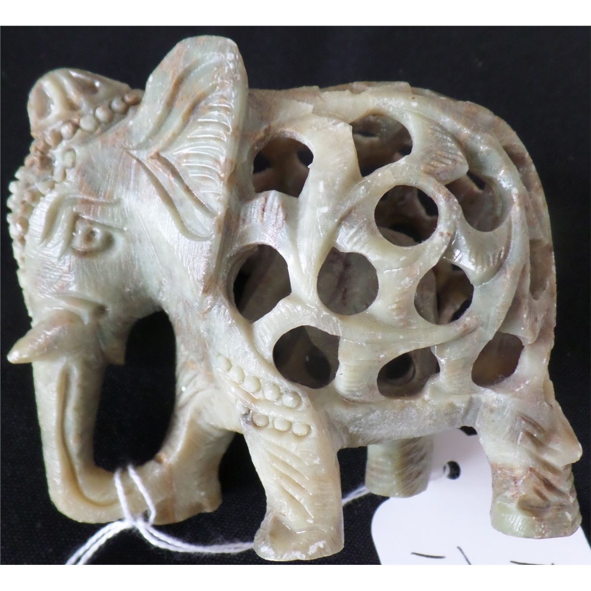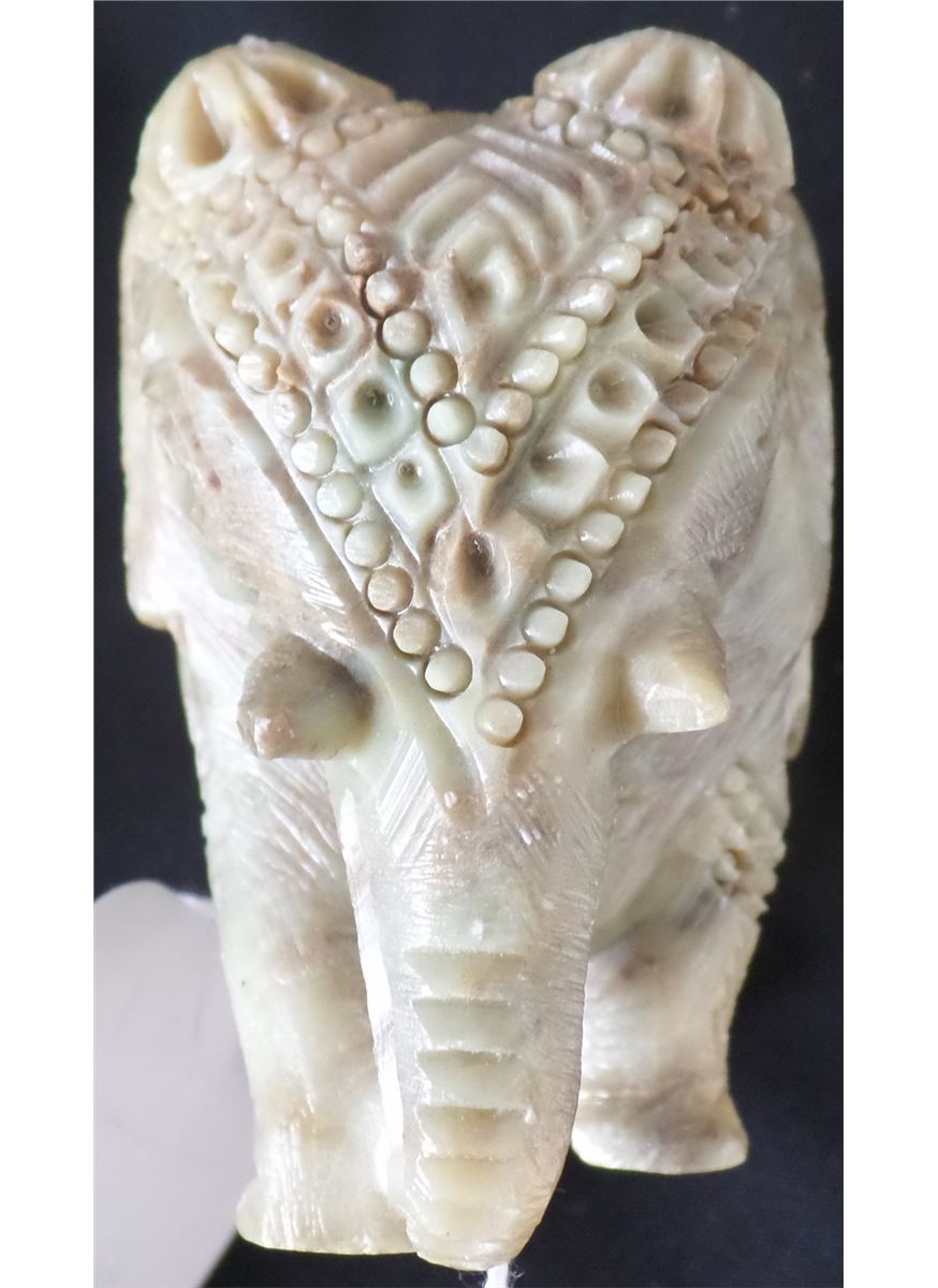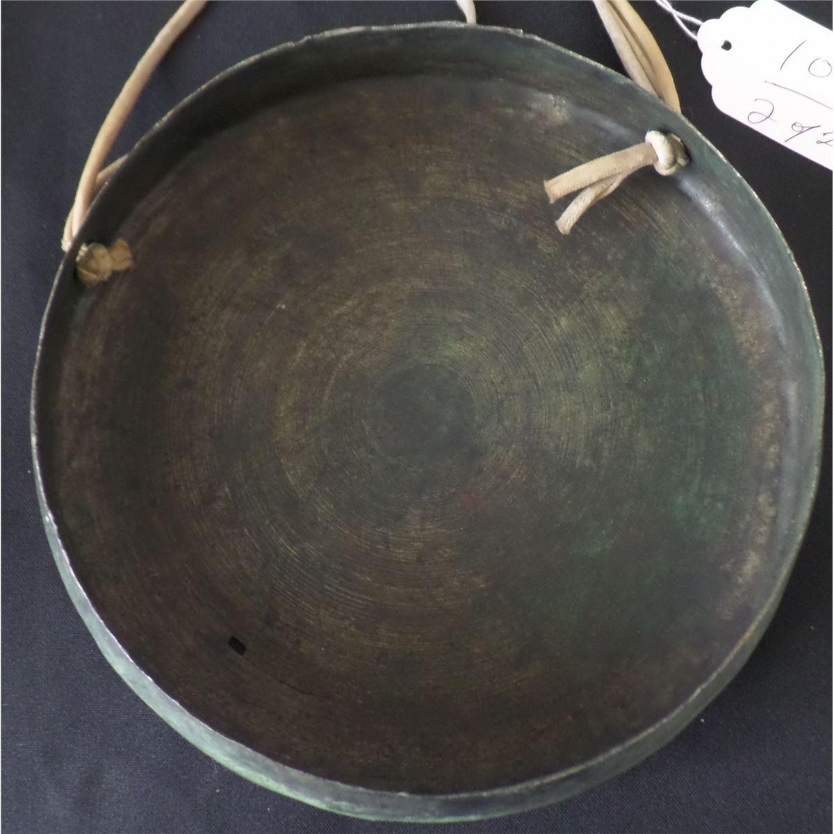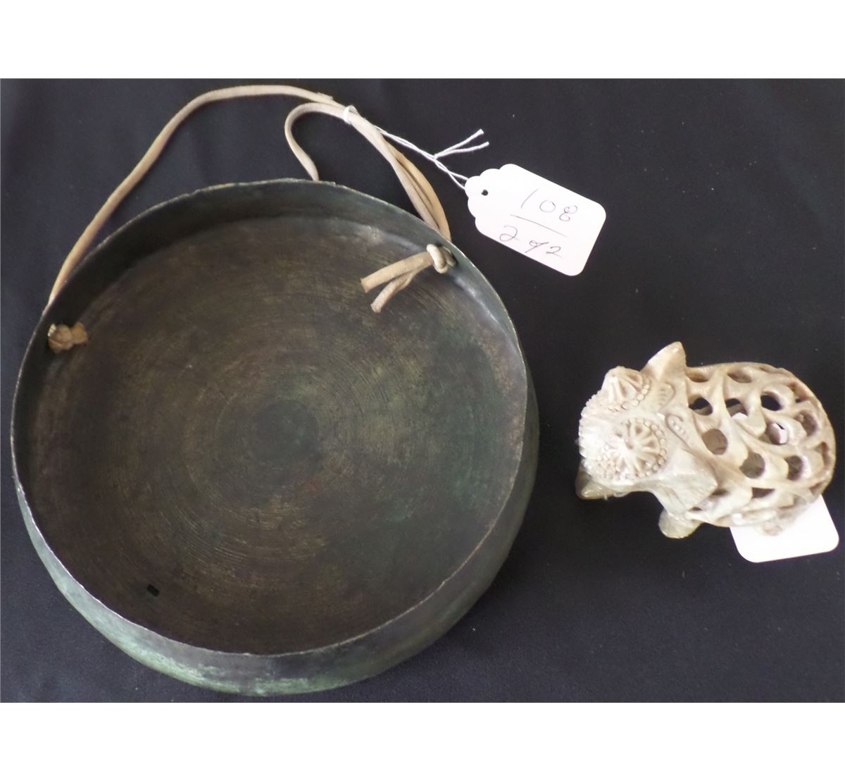 Antique Chinese Bronze Gong from 1820's and stone elephant. The bronze gong measures 9 x 1 1/2 inches and the elephant is 4x3x3 inches. The gong has small crack about 1 inch. There is heavy patina. Shipping $16.50