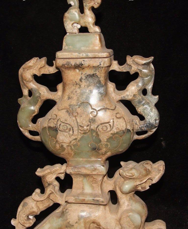 Antique Chinese Jade Carving Dragon Beast PiXiu Pot Jar.....Size: Height 11.4 inch ; This antique has been kept in very good condition. Its beauty for jade collectors.