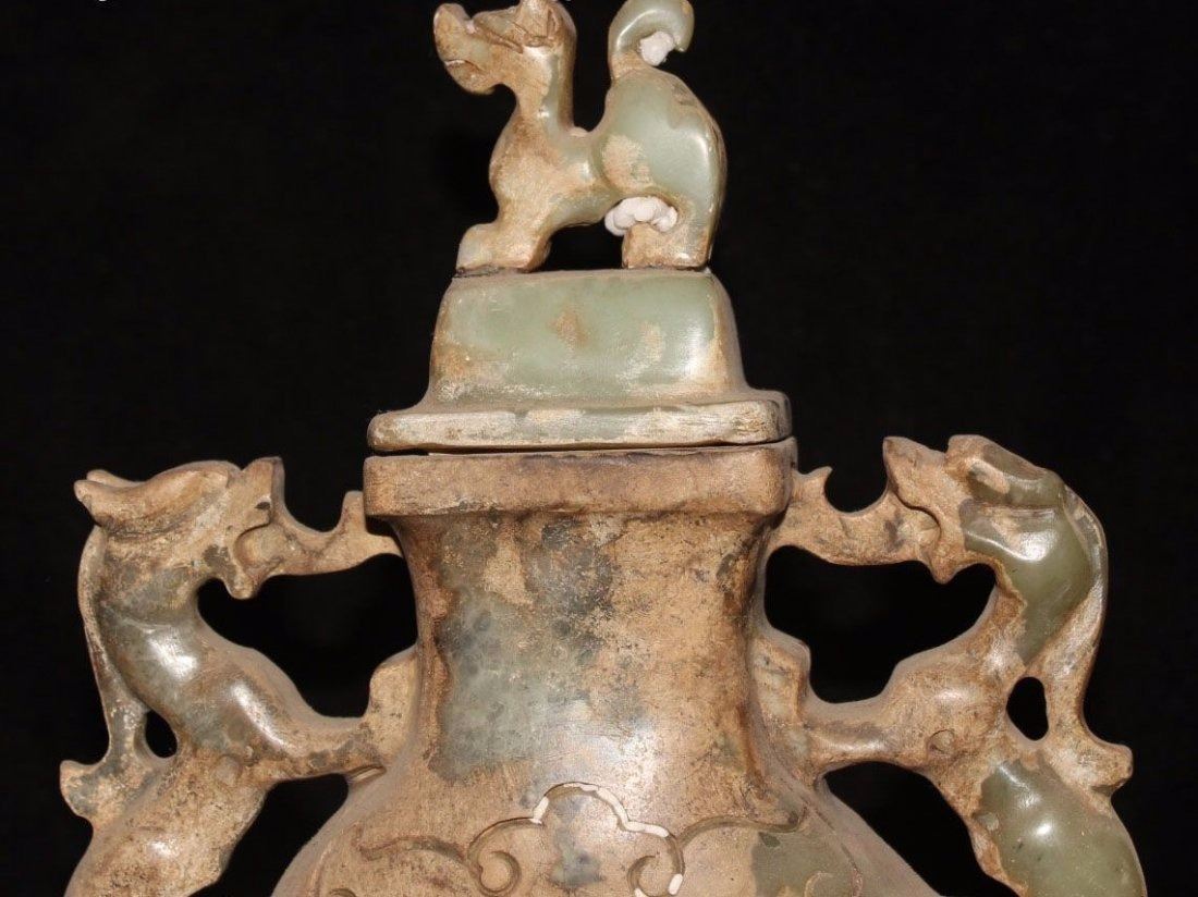 Antique Chinese Jade Carving Dragon Beast PiXiu Pot Jar.....Size: Height 11.4 inch ; This antique has been kept in very good condition. Its beauty for jade collectors.