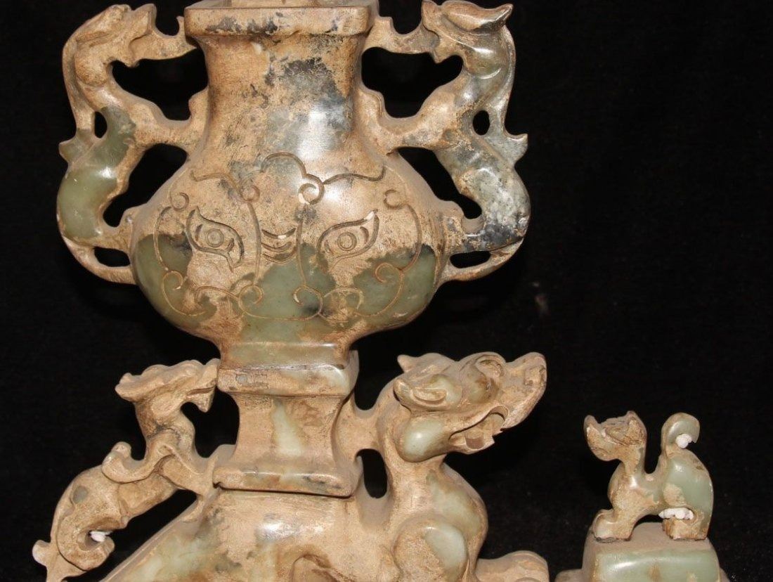 Antique Chinese Jade Carving Dragon Beast PiXiu Pot Jar.....Size: Height 11.4 inch ; This antique has been kept in very good condition. Its beauty for jade collectors.