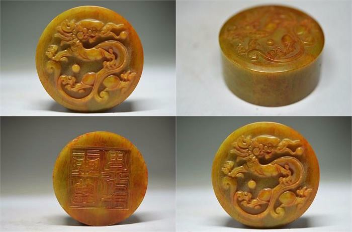 Antique Chinese Jade Hand Carved Dragon Seal........Length?53mm....Width?27mm.....Height?53mm