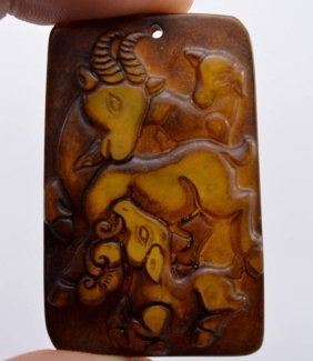 Antique Chinese Jade Sheep Pendant....size :51mm*33mm;
