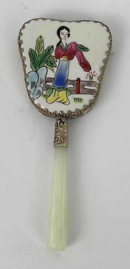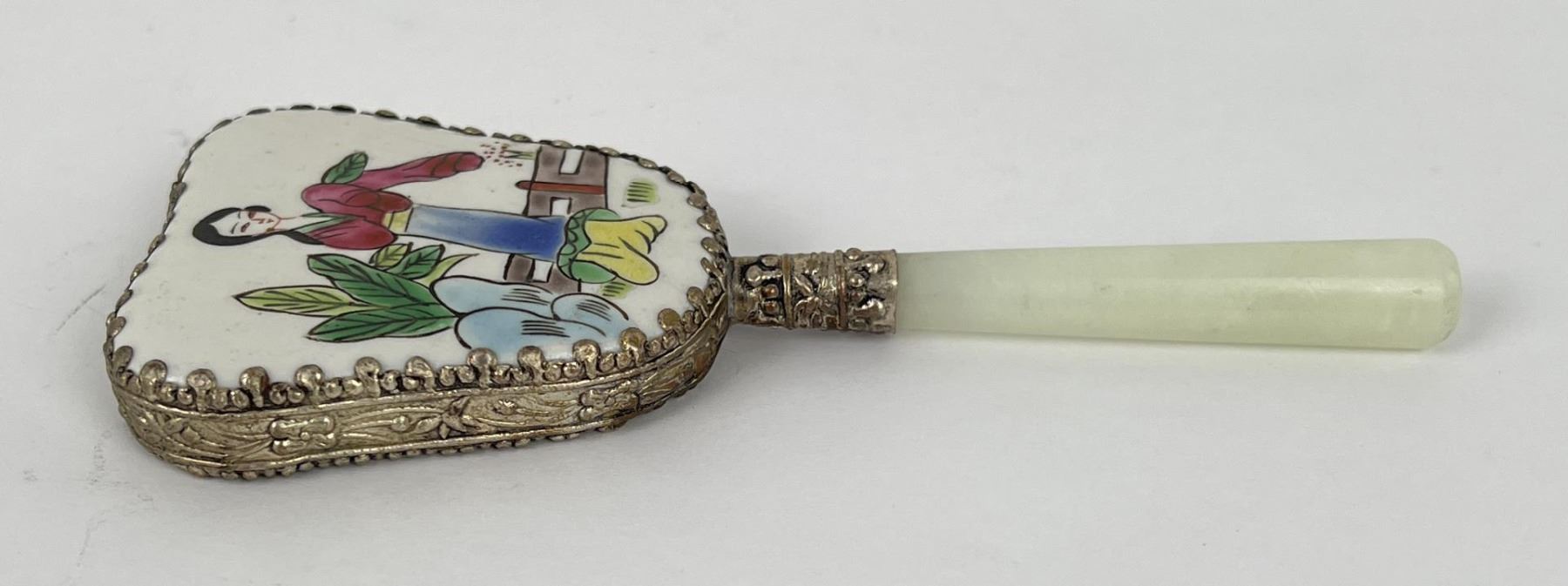 Jade handle. Porcelain Shard back. 5 1/2" long.
