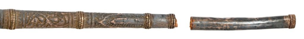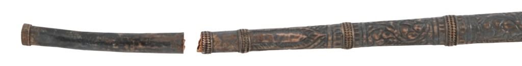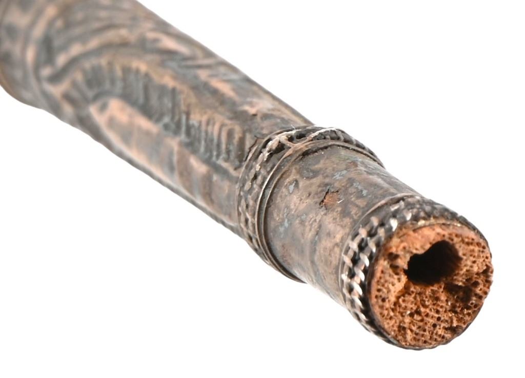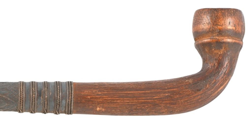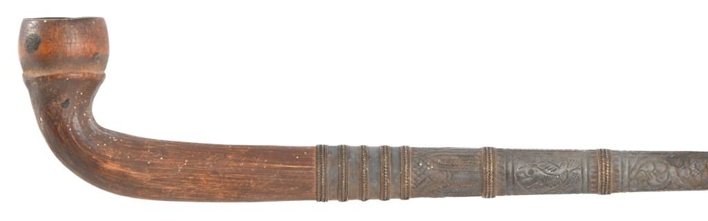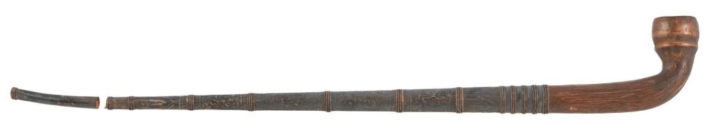 Approximately 17" Long, Bowl is 1" Diameter. Tip is broken but may be repaired. From the personal collection of Bud Shrake