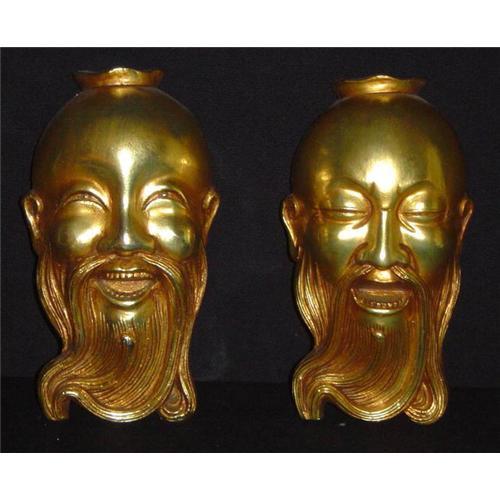 <tr><td>Title:Antique Chinese Pair of Gilded Masks</td></tr>