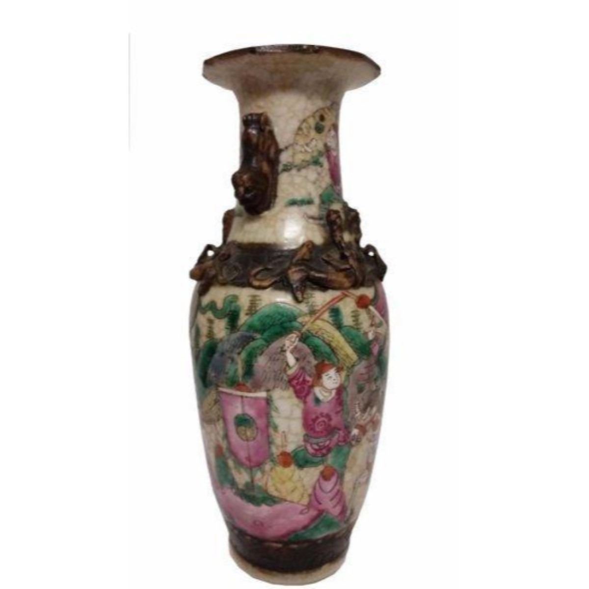 Antique Chinese porcelain crackled glaze warrior vase 8 1/4 " tall x 3 1/2 " wide