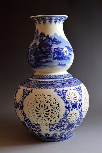 Antique Chinese Porcelain Vase......combination of two vases: Total height of both Vases 30cm diameter 18cm;