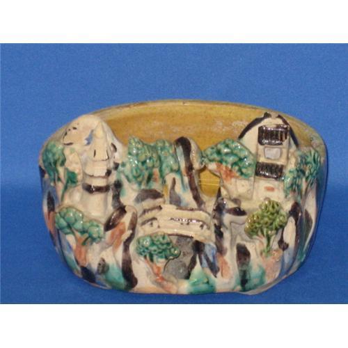 This is a very nice antique Chinese Pottery Planter designed with a Castl and Flowers on from 19th CT. There is some small damages on glaze and paint.