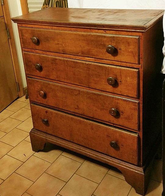 Antique Chippendale, Connecticut made chest with dovetail throughout, top drawers all dove tail, all hand hewn, all made by hand, with original back, beautiful bracket feet on the front, original wooden knobs, nice country chest, clean, ready to go right in home.